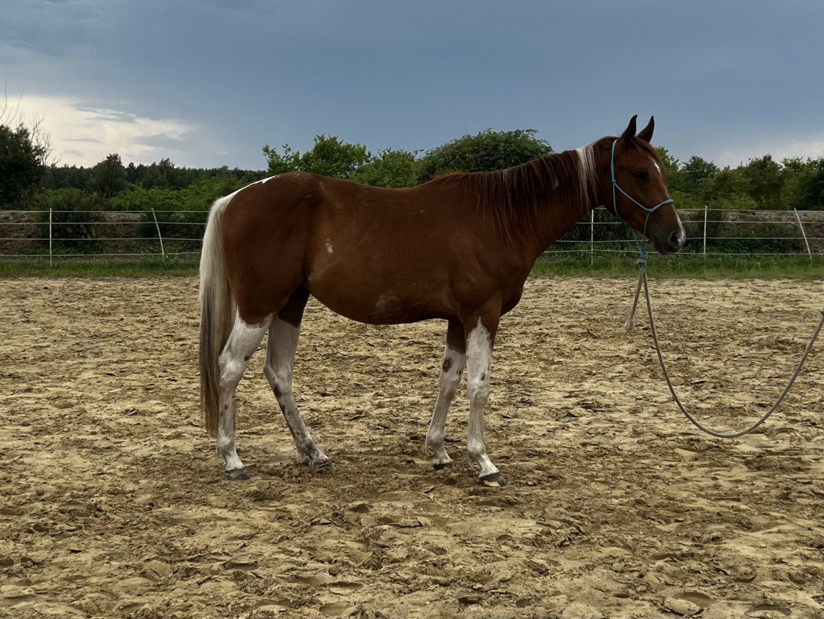 2latek z rodowodem i ruchem prosperującym do sportu w konkurencjach technicznych westernowych - HUS/Trail/Horsemanship/Pleasure. Bardzo spokojny i stabilny temperament. Zapowiada się na konia wysokiego w przedziale ok. 157cm. Mierzony w sierpniu miał 154cm w kłębie. Idealnie sprawdzi się również w roli konia rodzinnego.