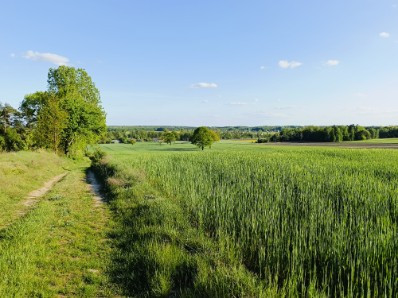 Atuty: piękny widok na przeciwległe wzgórza i las, dojazd polną drogą do lasu i do rzeki, piękne tereny jeździeckie i turystyczne, atrakcyjna cena