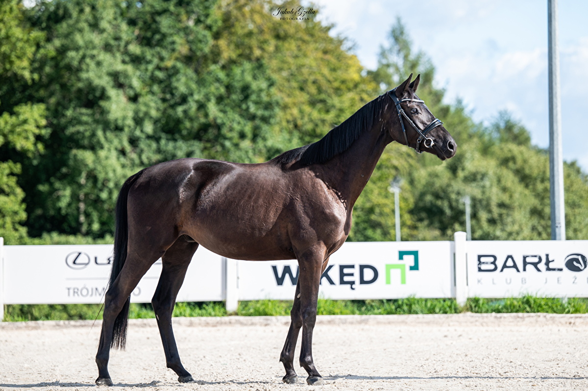 Sześcioletni, skarogniady wałach o smukłej i eleganckiej sylwetce. Syn ogiera trakeńskiego Millenium.