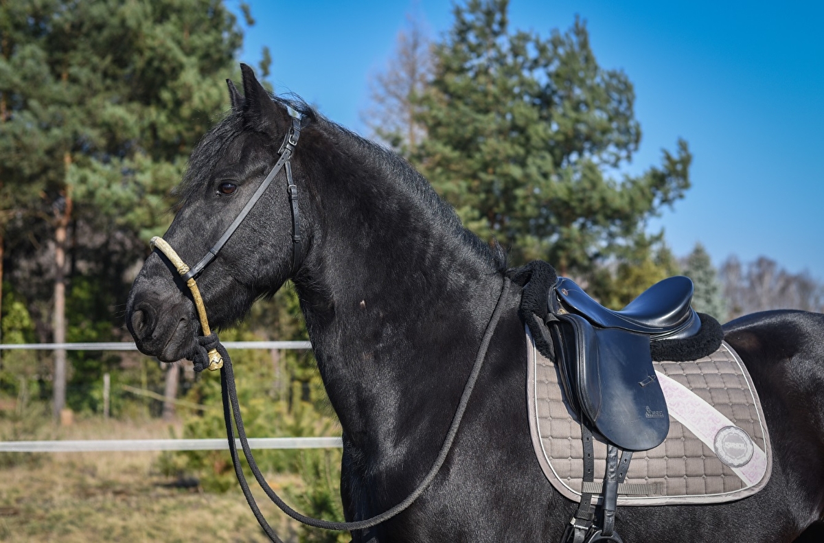 Sprzedam czaprak Eskadrona, model bicolor, w pięknych kolorach Brown melange / Powderrose. Profil DL. Czaprak nowy z metką, w stanie bdb+++, zarzucony na konia tylko na chwilę do zdjęć.