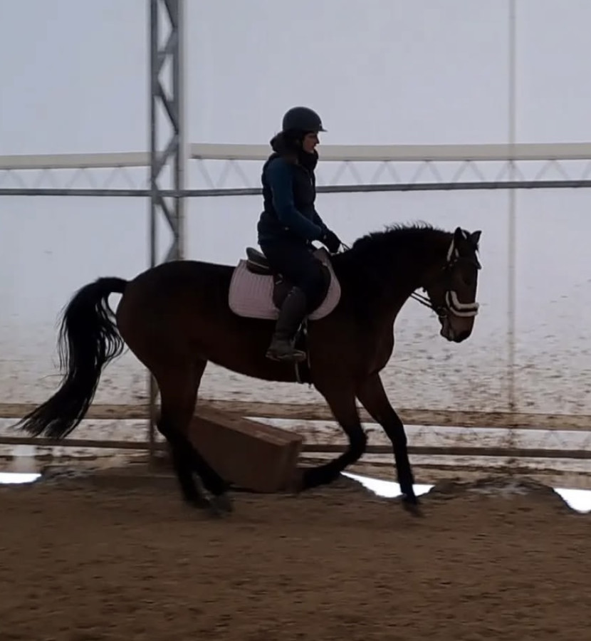 Na sprzedaż poleca się bardzo uniwersalna kobyłka. AES (re-Volta nie posiada takiej opcji), 7 lat, ok 163-165 cm. Późno zajeżdżona, więc jest jeszcze dosyć świeża i wymaga trochę pracy, ale jak komuś się będzie chciało to będzie mieć fantastycznego konika. Aktualnie roztrenowana przez moje ograniczenia czasowe. Przed przerwą chodziła sama w teren, a jazda na cordeo nie sprawiała jej żadnej trudności. Pomimo braku doświadczenia dosyć prosta w prowadzeniu, bardzo lubi ludzi i pracę, szybko się uczy. Jest po urazie więzadła, więc sprzedaję “do kochania” i rekreacji, natomiast zagoiło się na tyle dobrze, że możliwe że przy dobrym prowadzeniu coś jeszcze pójdzie. Widzę ją na bridlelessach ;)
