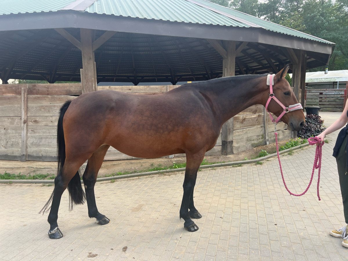 Na sprzedaż poleca się bardzo uniwersalna kobyłka. AES (re-Volta nie posiada takiej opcji), 7 lat, ok 163-165 cm. Późno zajeżdżona, więc jest jeszcze dosyć świeża i wymaga trochę pracy, ale jak komuś się będzie chciało to będzie mieć fantastycznego konika. Aktualnie roztrenowana przez moje ograniczenia czasowe. Przed przerwą chodziła sama w teren, a jazda na cordeo nie sprawiała jej żadnej trudności. Pomimo braku doświadczenia dosyć prosta w prowadzeniu, bardzo lubi ludzi i pracę, szybko się uczy. Jest po urazie więzadła, więc sprzedaję “do kochania” i rekreacji, natomiast zagoiło się na tyle dobrze, że możliwe że przy dobrym prowadzeniu coś jeszcze pójdzie. Widzę ją na bridlelessach ;)