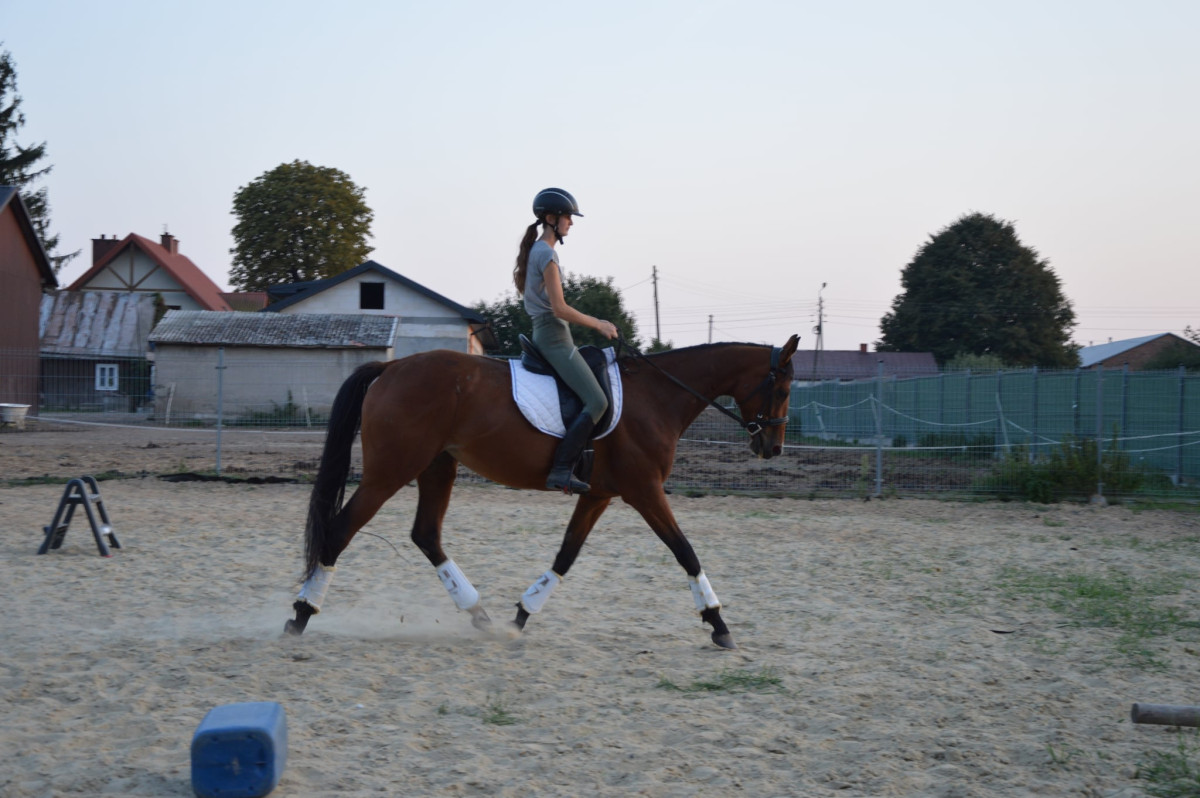 Mimo młodego wieku cechuje ją niezwykły spokój, łagodność i opanowanie. Pracuje w trzech podstawowych chodach, chodziła w tereny, świetnie pracuje z ziemi (na halterze, kawecanie czy na wolności). Łatwa w prowadzeniu, jezdna, bez głupich pomysłów, raczej nie zdarza jej się ponosić czy brykać. Obecnie w treningu ujeżdżeniowym, zna różne straszaki (auta, maszyny rolnicze, psy, folie, spreje). Jeżdżona przez osobę doświadczoną, nie zepsuta, jednak bez problemu radziła sobie z nią osoba średniozaawansowana.
