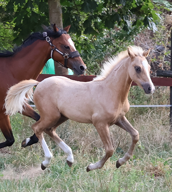 Ogierek posiada pełen rodowód, wpis do księgi głównej, poprawnie zbudowany z dobrym ruchem, kandydat na reproduktora.
