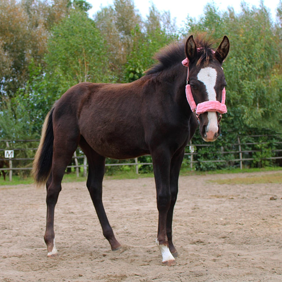 Blue jest dobrze zbudowaną klaczką maści skarogniadej. Przyzwyczajona do ludzi i zabiegów pielęgnacyjnych, daje nogi, jest wiązana i prowadzona w ręku - posiada wszystkie umiejętności jakie powinien posiadać odsadek. Z charakteru bardzo odważna.