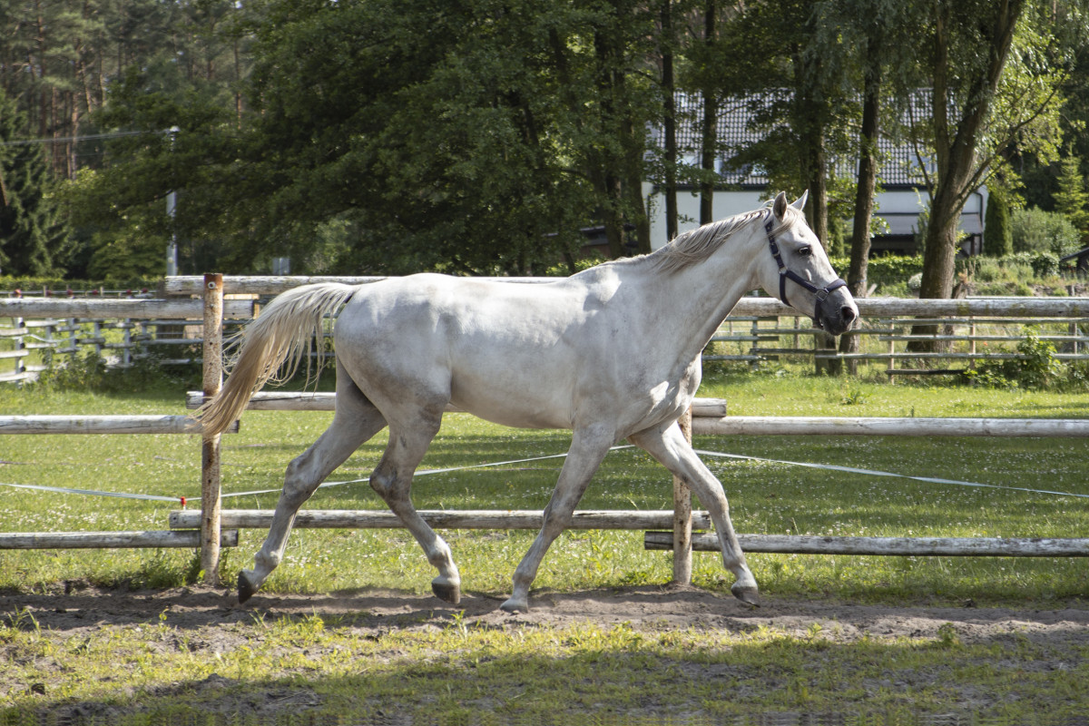Bardzo dobrze zapowiadający się czterolatek, świetny ruch, bardzo dobra technika skoku, miły, kontaktowy, chętny do pracy. Od lipca regularnie pracuje pod siodłem. W korytarzu skacze bardzo czysto, nigdy się nie zatrzymał. Wyróżnia się szybką, aktywną pracą przodu.