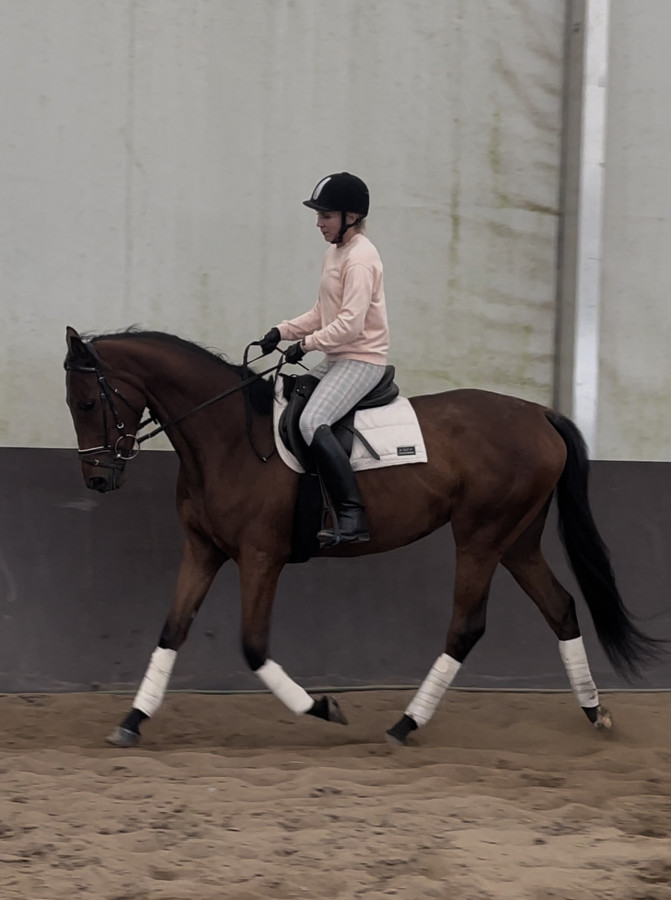 Nowego domu poszukuje wspaniała klacz, odbyła trening wyścigowy, obecnie wdraża się do pracy w stylu klasycznym. Koń o anielskim charakterze, uwielbia ludzi, chętnie współpracuje. Porusza się pod siodłem w trzech chodach, potrafi pracować na lonży. Prosperuje na świetnego konia. Po więcej informacji zapraszam do kontaktu.
