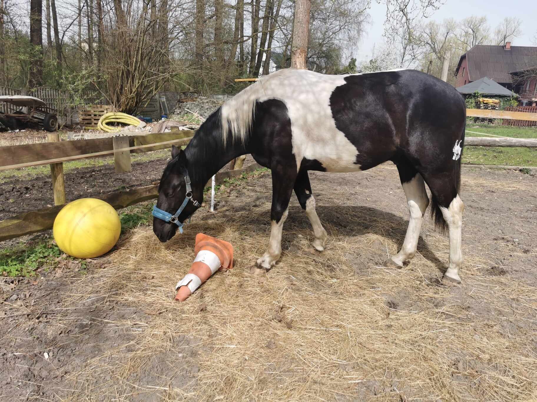 Masz mikrus parę dni temu postanowił sobie pięknie oskalpować pęcinę 🤦Podciął sobie skorę na długość palca i w gorę w głąb odciął na dobe 5cm. Szczęśliwie szybko udało się to opatrzyć i się tą górę wiszącą "przykleić" udało. W związku z tym teraz ani w las, ani na spacer po wsi nie chodzimy, to w ramach zajęcia mózgu przypominaliśmy sobie wchodzenie do przyczepy. Gówniarzyk jest z tych koni, które trzeba trzymać, żeby się nie pchały do środka 😉 Bo przecież w środku dystrybutor dobrości stoi 😅