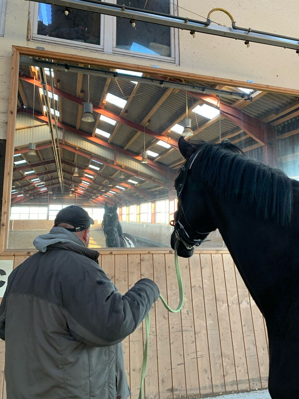 Głowę ma fenomenalną, poszedł dzisiaj pierwszy raz ze swojej „odsadkowej” stajni do sąsiedniej sportowej, niczym labrador na smyczy 😆