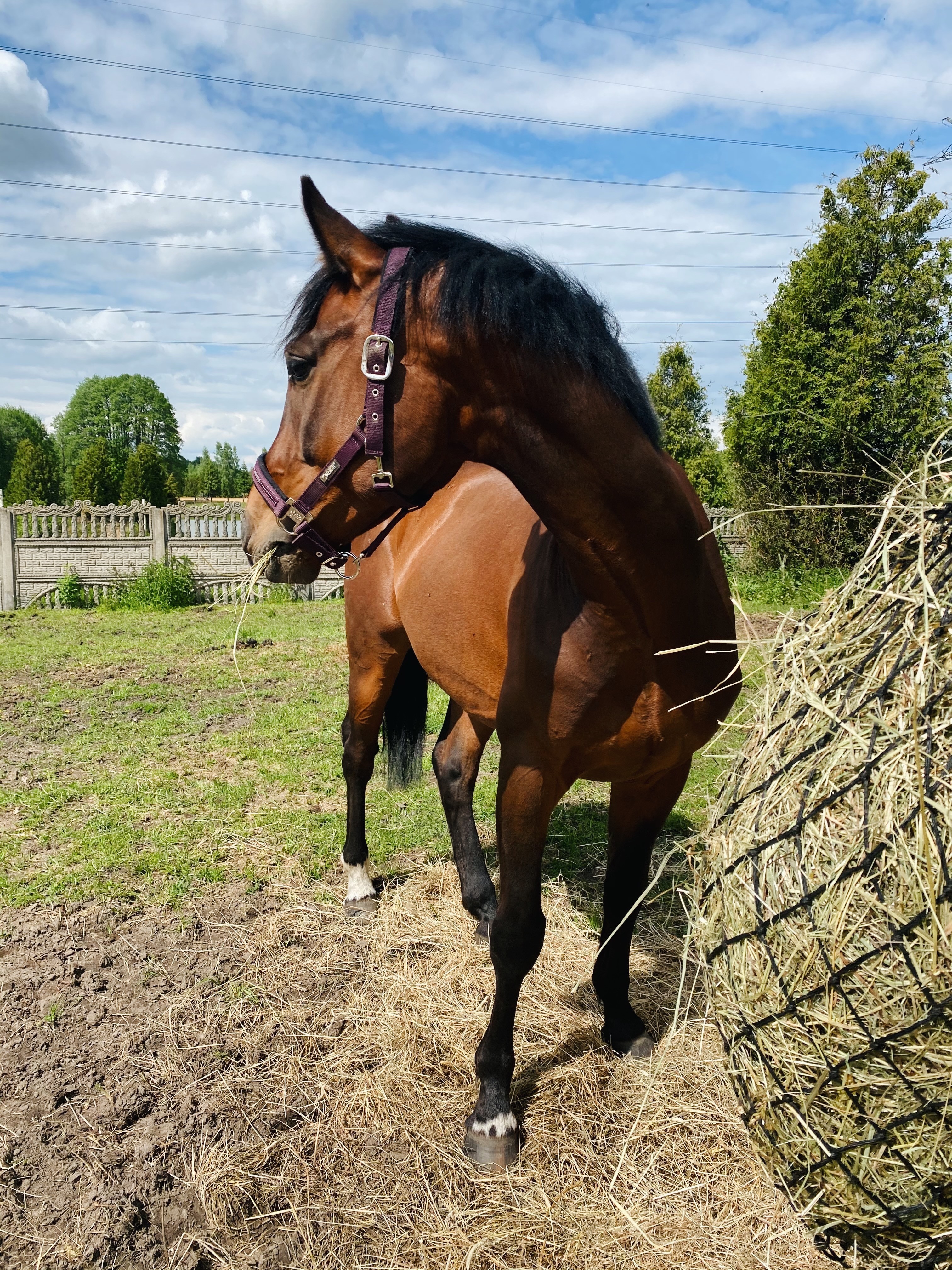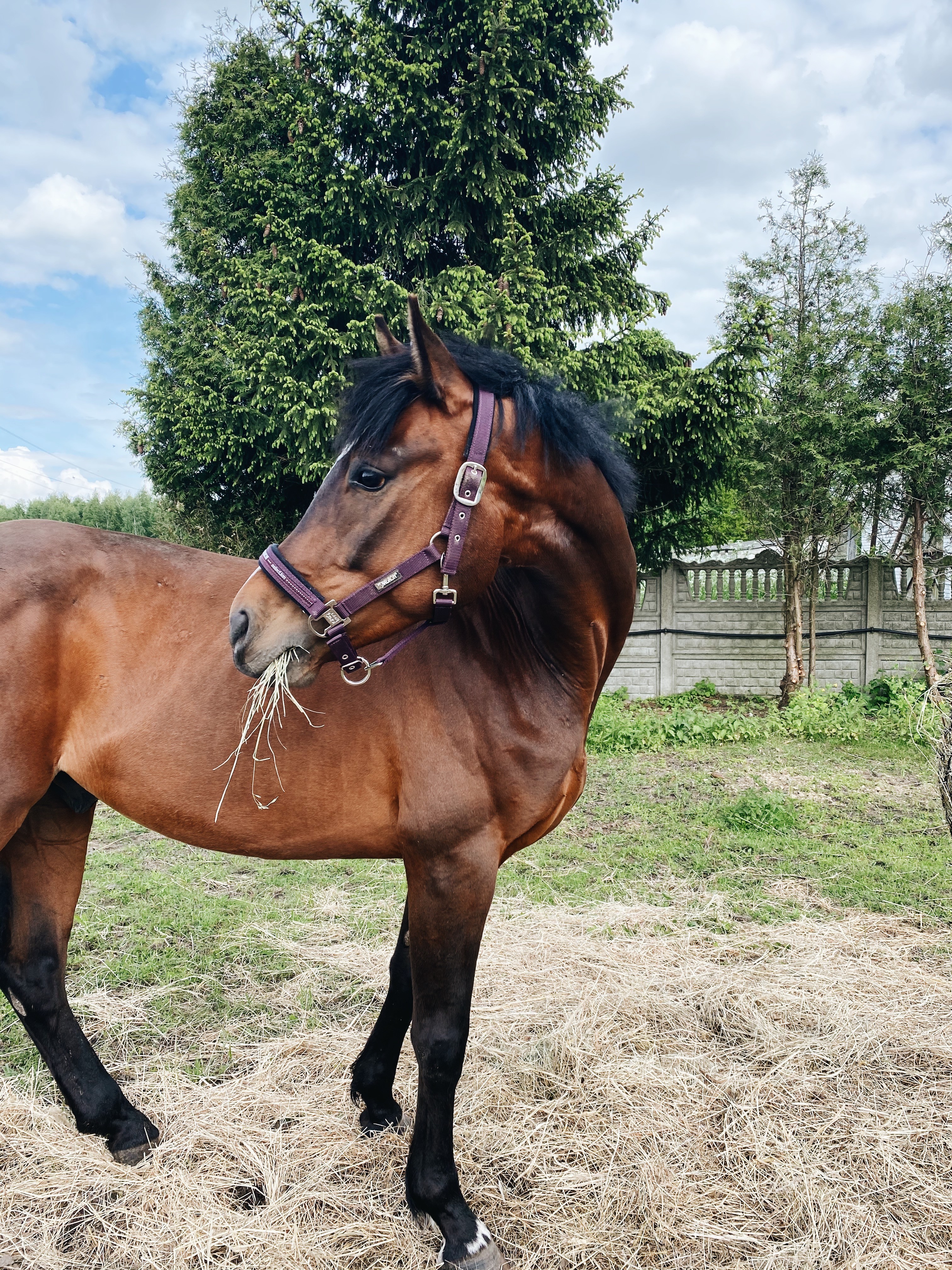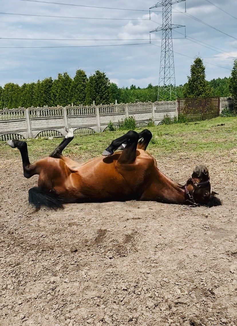 Ten koń jest tak grzeczny, że aż się zastanawiam, gdzie jest haczyk. 6letni, niedoświadczony zwierz wszedł bez problemu sam do koniowozu (nigdy nie jechał koniowozem i to w dodatku sam), a następnie całą drogę sobie stał i jadł sianko. I tyle. Jak dojechaliśmy, to był superwyluzowany, nie był spocony ani nerwowy. Wysiadł, poszedł do boksu, bez problemu mogłam go wyczyścić bez przywiązywania. Teraz siedzi na padoku, spaceruje sobie, skubie siano, zapoznał się z kumplem zza płotu. Jest wspaniały! 😍😍