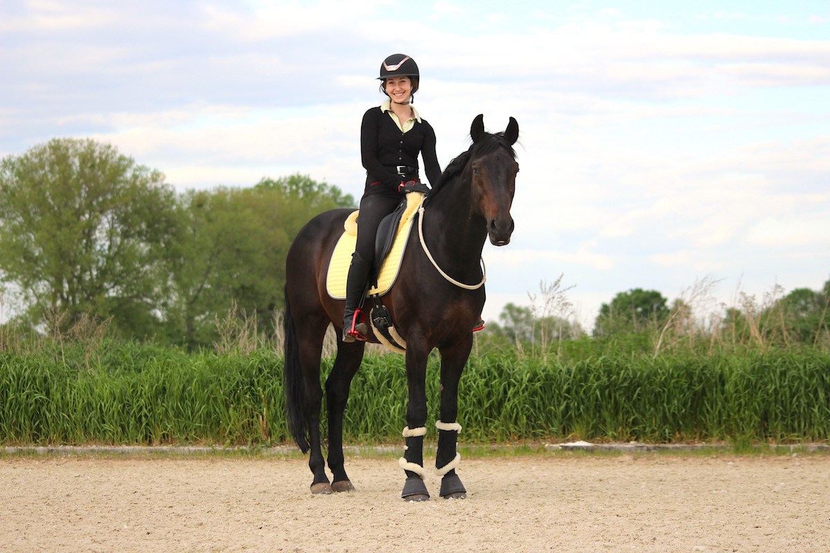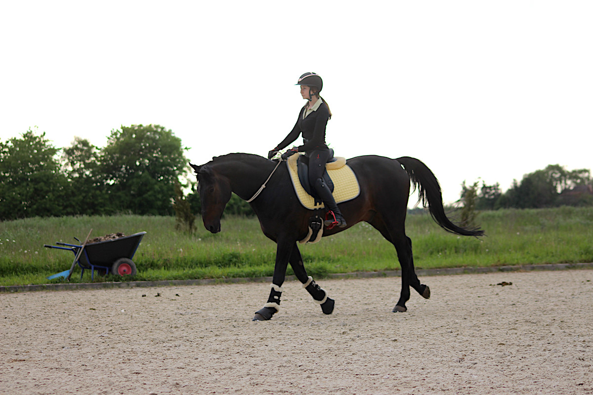 Poza tym, że z siodła jeszcze długo nie będziemy ogarniać, to Johnny jest przegrzeczny i bardzo mądry, niczego się nie boi, super się zachowuje 😍 Nie wierzę, że tak super trafiłam.
