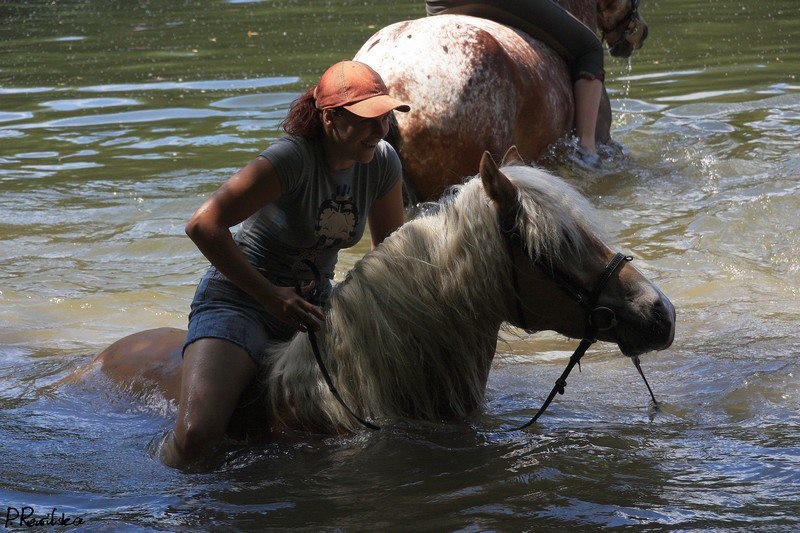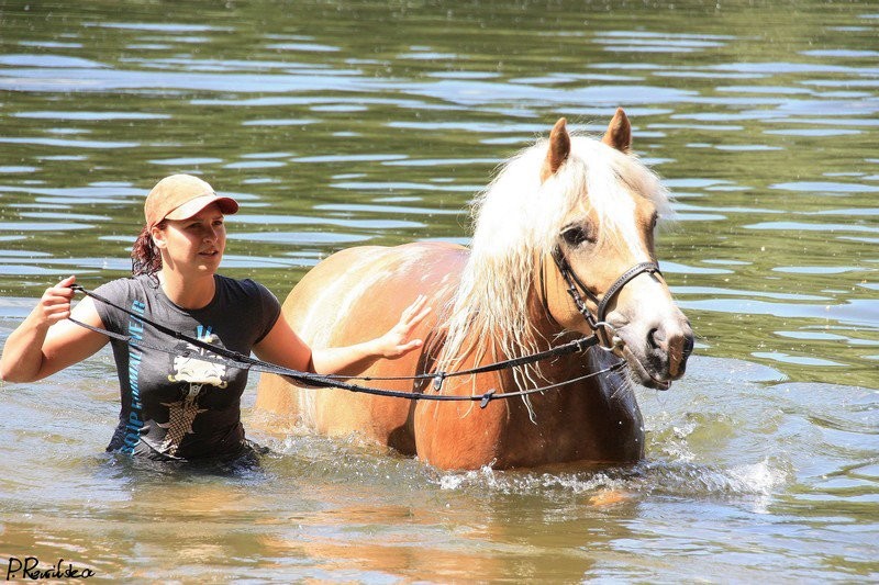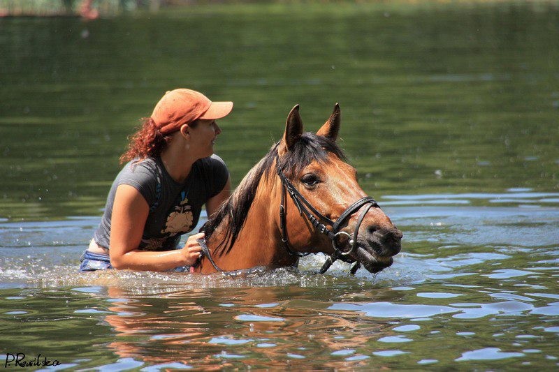Kobyłka poniżej pływała ekstra z jeźdźcem na grzbiecie ale ona była już nauczona i bardzo lubiła pływać.