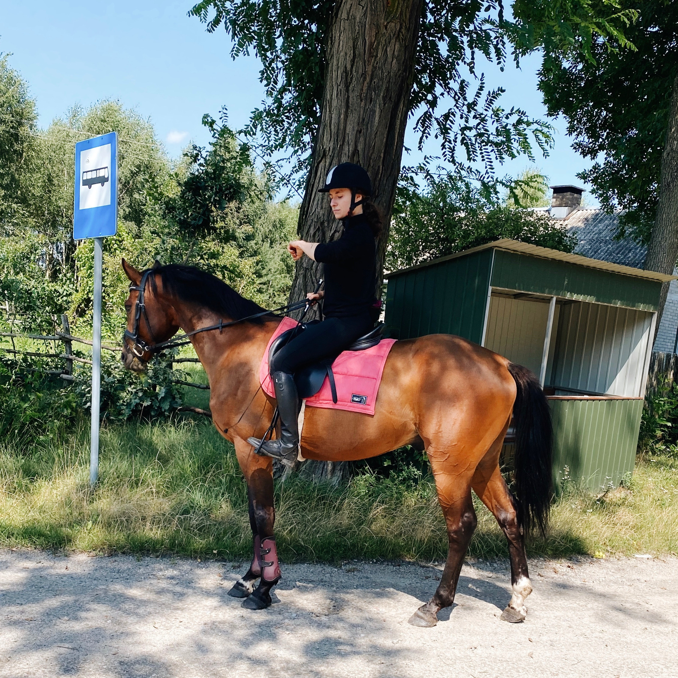 I tak wozimy się po lesie, odkrywamy nowe ścieżki i nowe strachy - dziś np. strach na wróble na polu. Fajny ten mój koń, dzielny jest bardzo i niczego się nie boi. Sarny, samochody, traktory, motocykle - wszystko już opatrzone 😇 Pierwszy raz wracaliśmy dziś przez wieś, a nie przez las i też bez problemu, na luźnej wodzy i do domu.