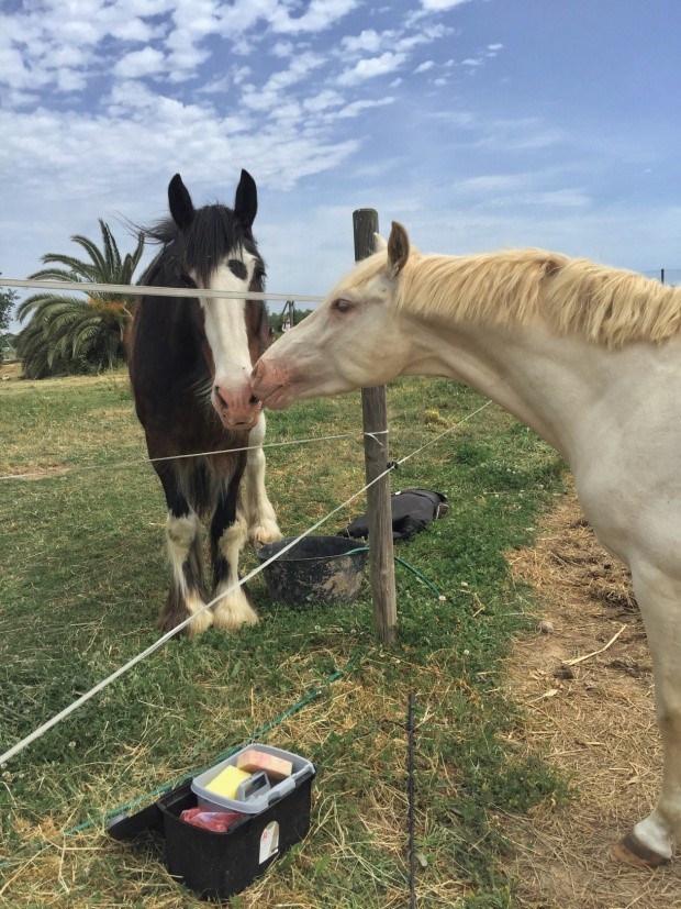 Mój koń jest ostatnio mega grzeczny, pielęgnacja pokrastracyjna przebiega bez zgrzytów. Jeszcze trochę i będzie mógł pójść na padok z ziomeczkami-nestorami rodu, 14 letnim Shire i 24 letnim dziadeczkiem po karierze skokowej (który, nota bene, onegdaj był koniem sportowym infanty Eleny - córki pajaca w koronie, znanego również jako morderca słoni - ale w momencie gdy stracił oko w wypadku przestal być interesującą zabawką i miał być skierowany do ubojni). Dzięki temu że musi mieć zapewniony wymuszony ruch, chodzi już na lonży jak złoto, fajny z niego chłopak. Szkoda tylko że u nas już patelnia i zaczęły się #cremelloissues, muszę mu zakładać maskę z filtrem UV na cały dzień żeby się nie przypalała twarz. Na co mi był taki jasny koń to ja nie wiem 🤣