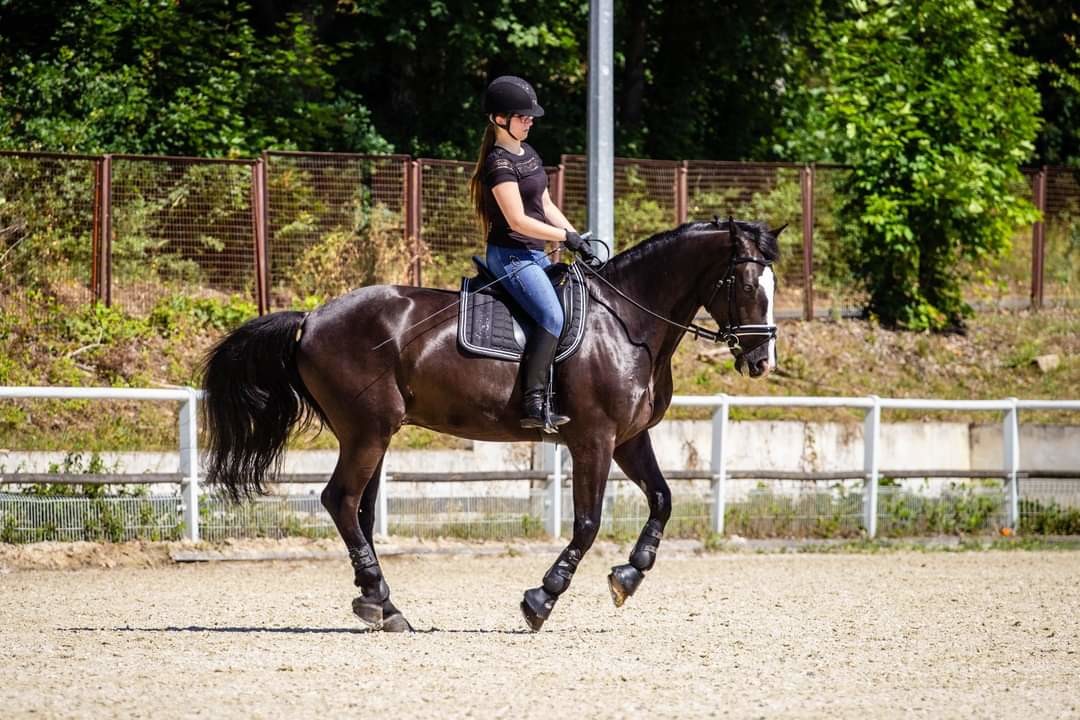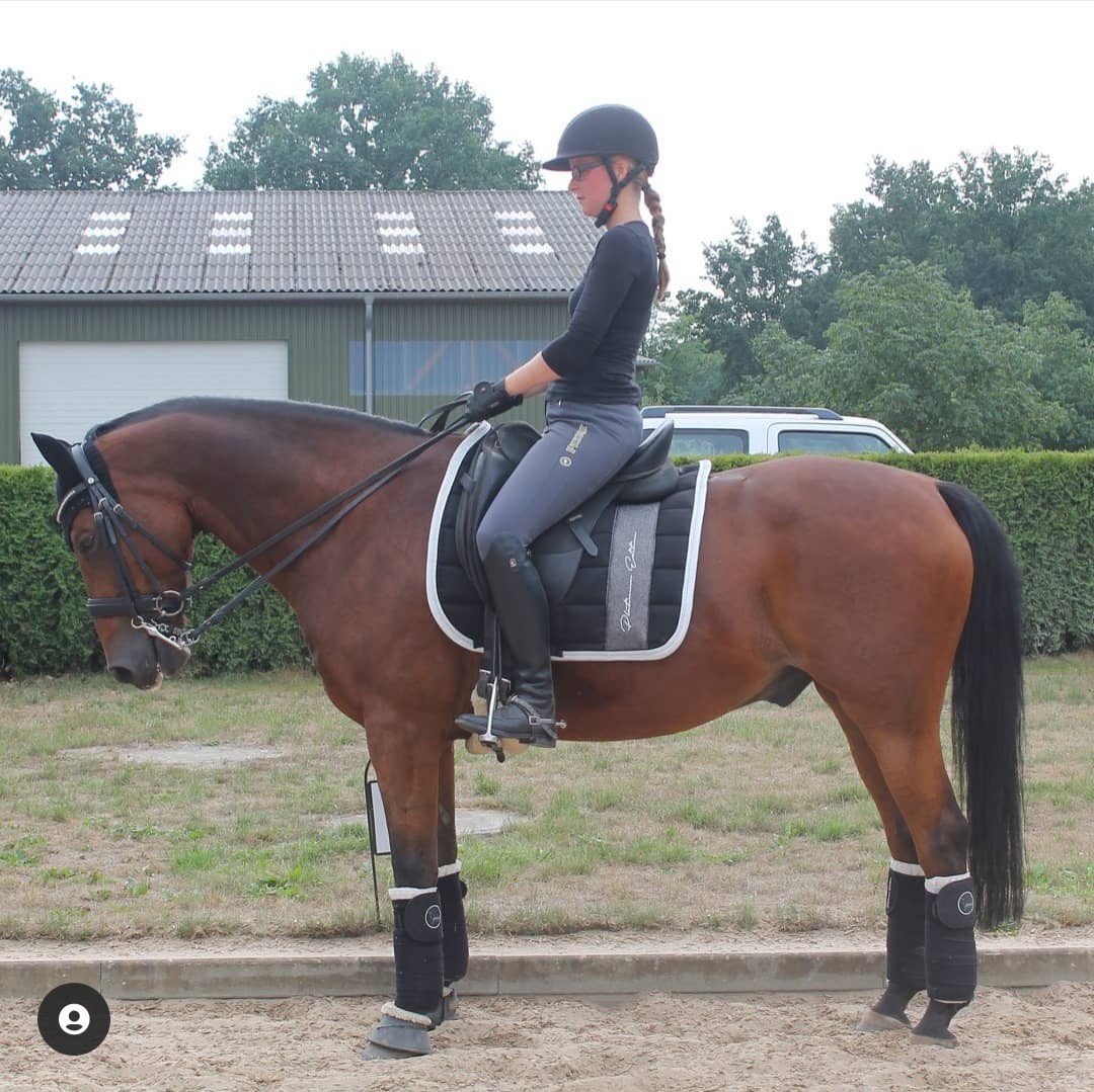 a ja lubię czarny sprzęt. Mam wszystko czarne, ogłowie, siodło, podkładkę, ochraniacze i jak jeszcze czaprak jest czarny to lux. Mam jeden czarny czaprak z winderena ze srebrną lamówką i to już mnie trochę kłuje 😉 Ale czarny generalnie pasuje do wszystkiego, jest dobrą bazą i można łączyć ze wszystkimi kolorami w razie czego.