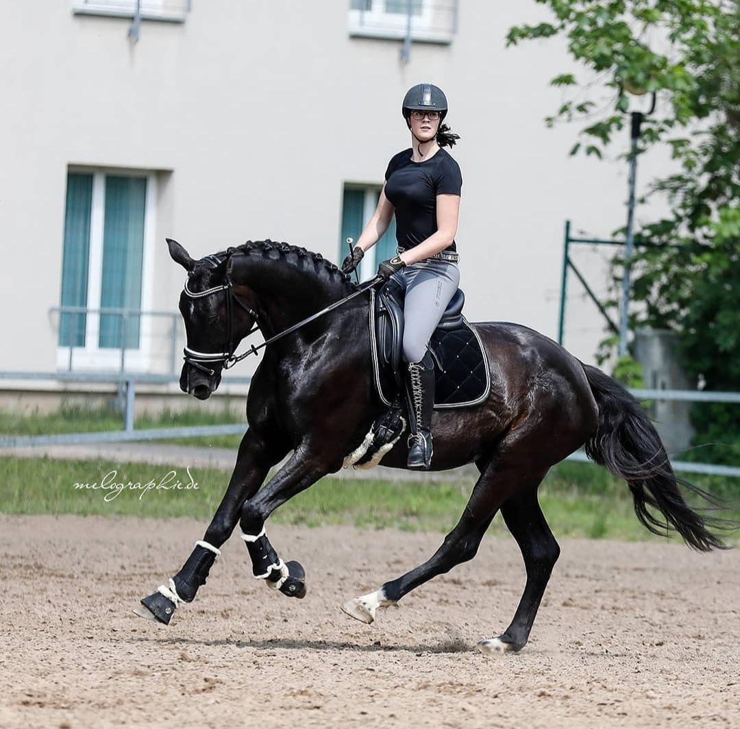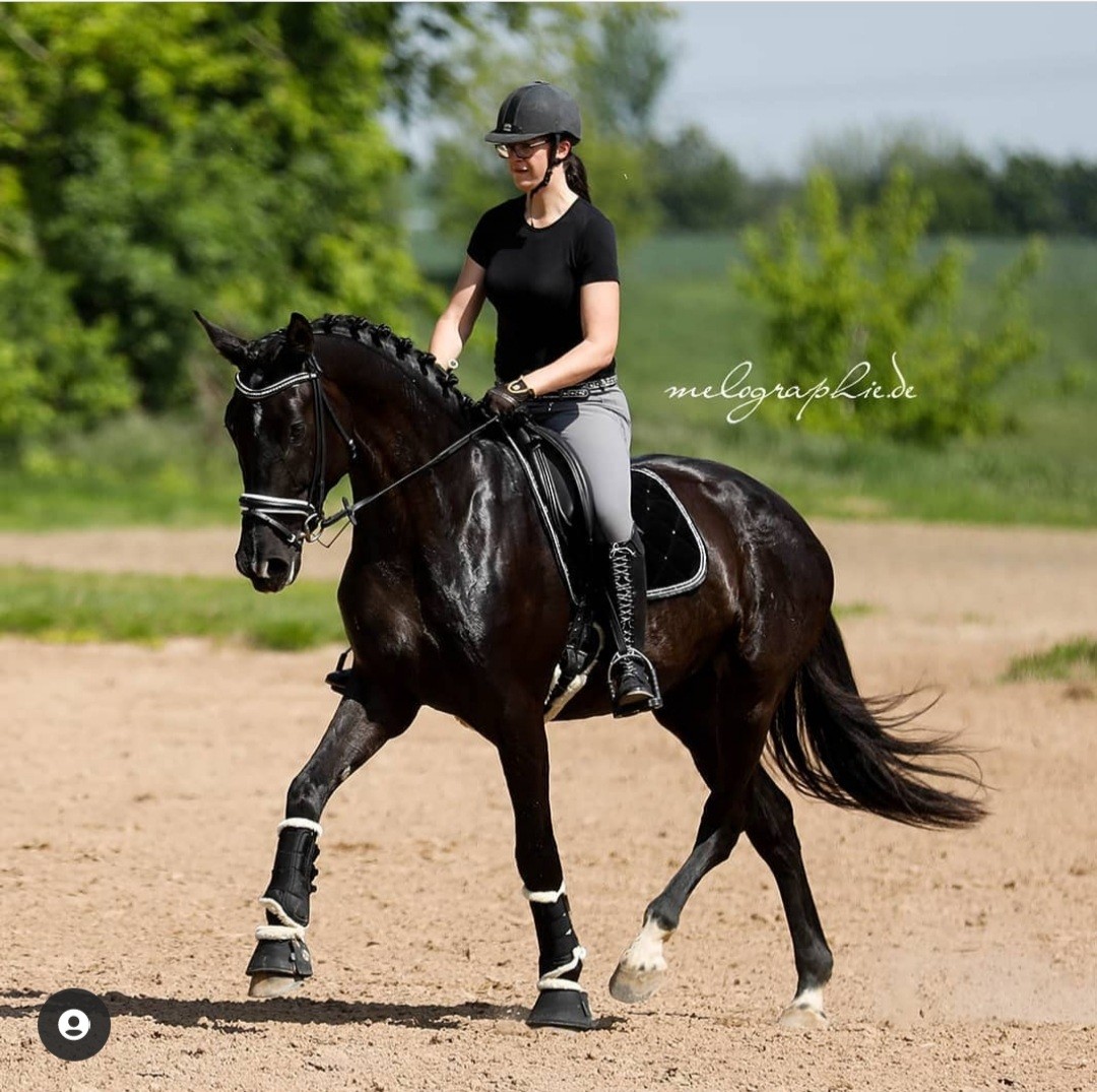 Jeśli już chcesz czerń łączyć z czymś, to jakiś kontrast mógłby fajnie wypaść - czerwień/bordo (swojego czasy Darolga tak "się nosiła" z Korabem, super to wyglądało! 😍 ), błękit? Nawet jakiś taki fiolet, albo... złoto. (Poszukaj fotek Klary Kostrzewy, pamiętam z CSIO, bardzo elegancko to wyglądało)