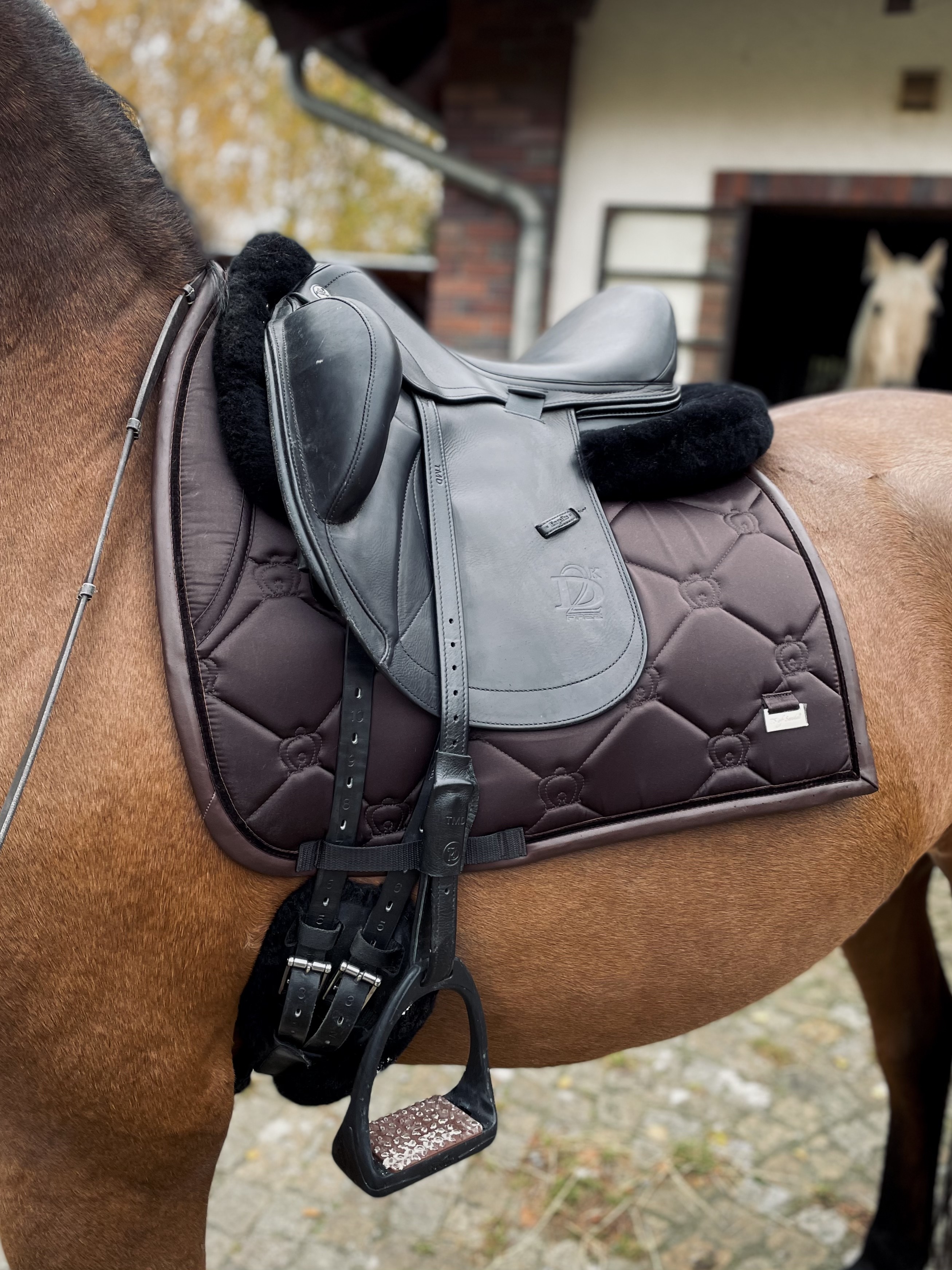 Klami kocham czarny sprzęt, teraz mamy jeszcze czarny popręg z misiem, czarnego misia pod siodło, zawsze owijki czarne z podkładkami 😍 mmmm polecam. Jutro mogę Ci zdjęcie zrobić takiego zestawu