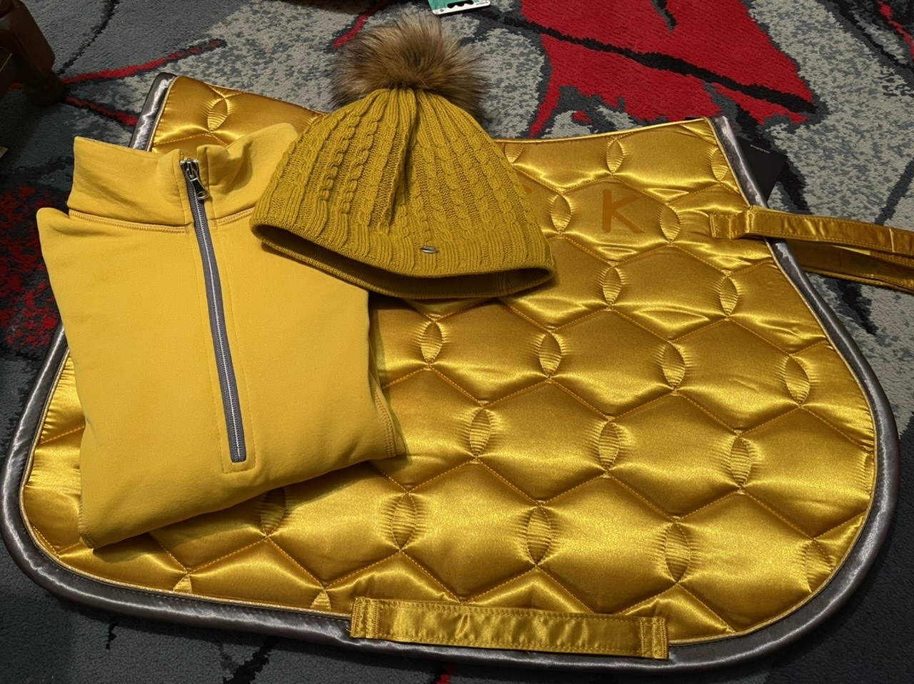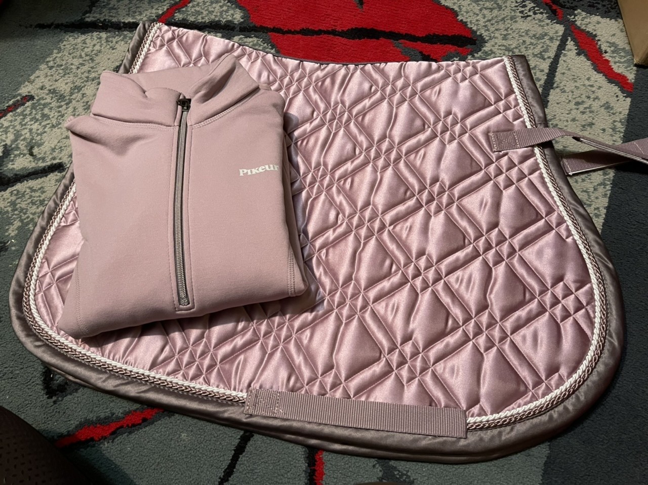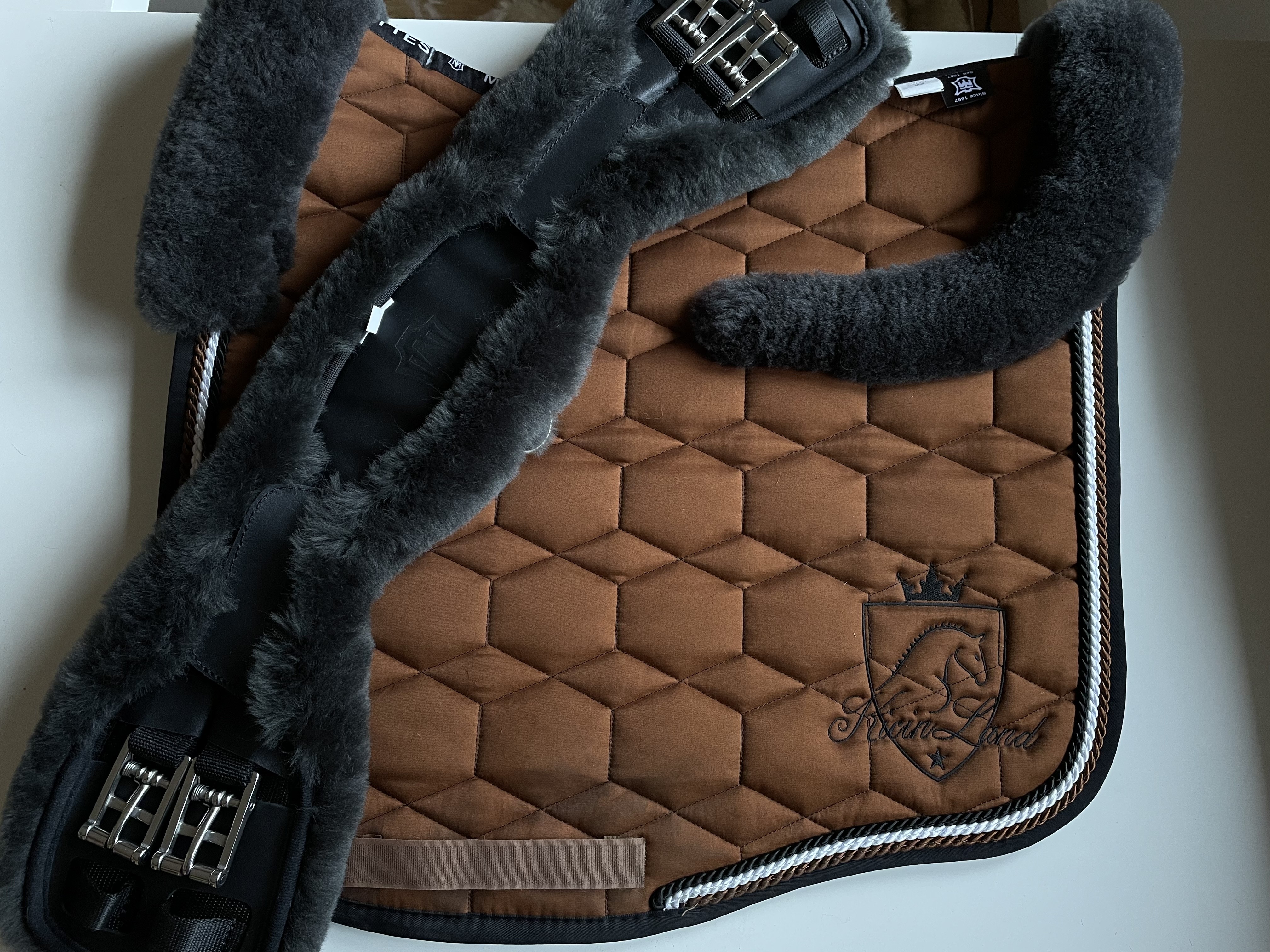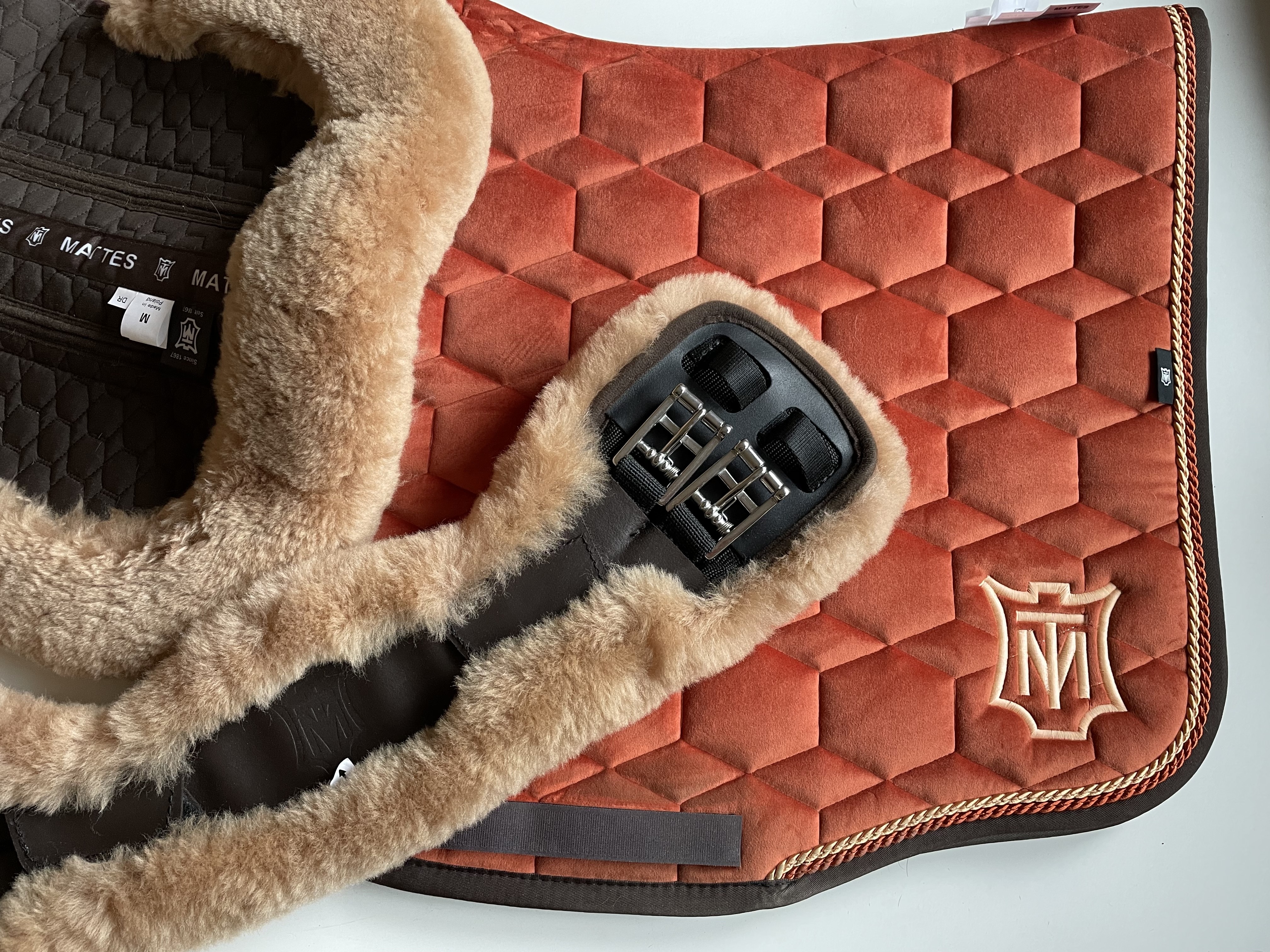 Przy okazji pytanie (nie bardzo wiem gdzie spytać), ile może być warty wycięty, ujeżdżeniowy czaprak podbity futrem naturalnym po całości od spodu, z rantem. Typu jak na fotce, z tym że raczej nie mattes, ale jakościowo porównywalny. Stan dobry+.