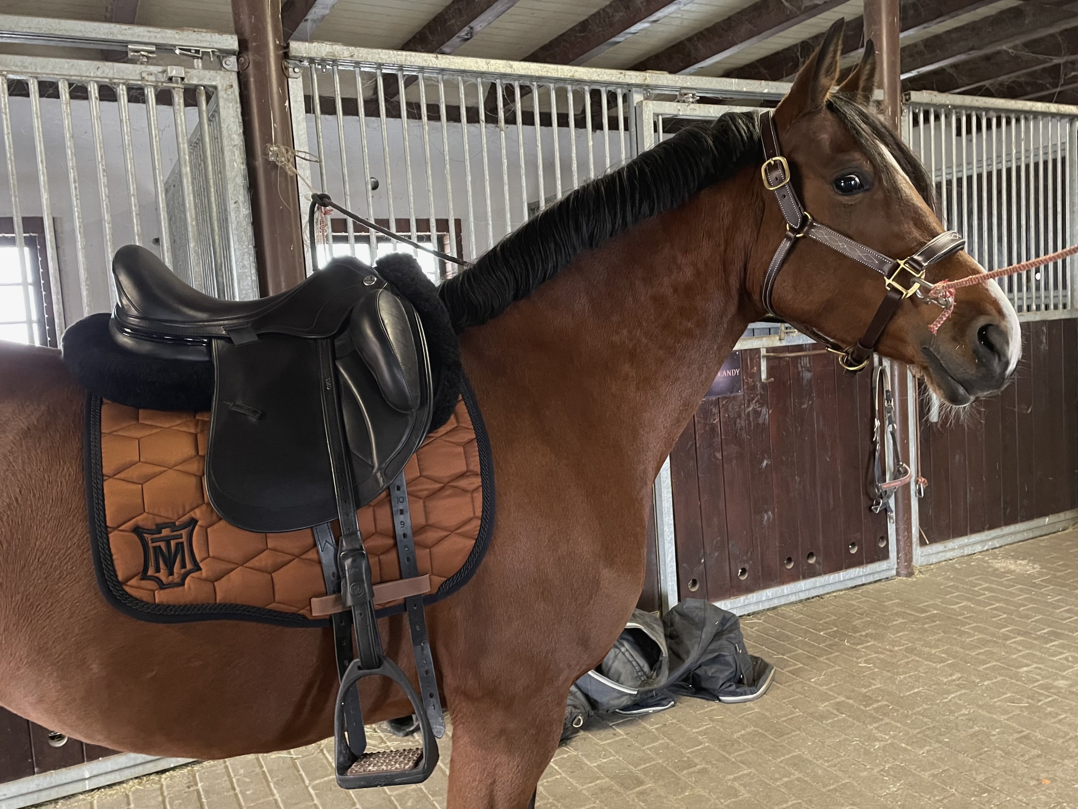 Daisy dalej areszt boksowy z powodu kontuzji, ale dzisiaj dotarł mój już sto lat temu zamówiony mattes nugatowy z czarnymi sznurkami i lamowka. Co to by nie było za kolorowo 😎 nie mogłam się powstrzymać i chociaż cichaczem przymierzyłam