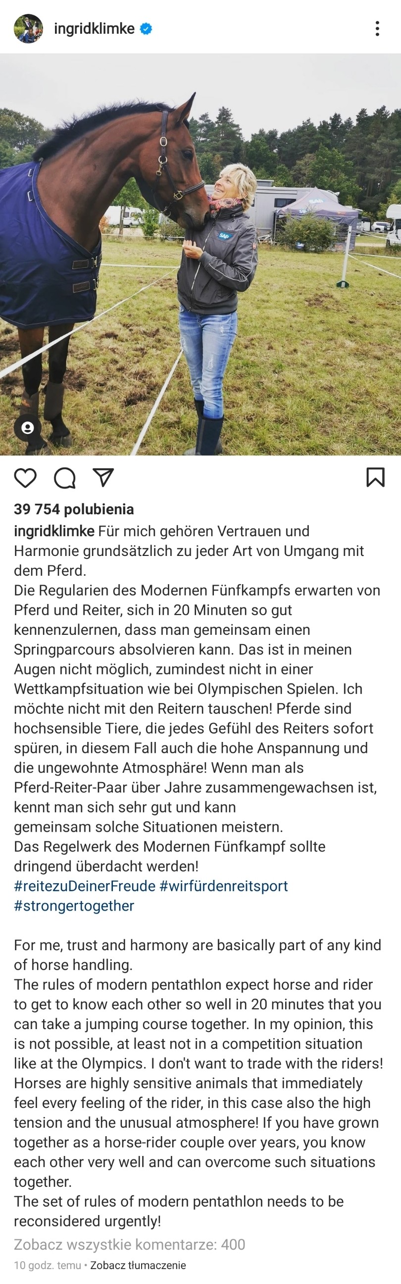 Generalnie nie uważam, że w pięcioboju jest wszystko cacy, natomiast widziałam, że można to zrobić na prawdę ok. Od wielu lat budzi to kontrowersje, jest problematyczne. Były kiedyś plany zmiany jeździectwa, np na rower, ale jakoś nie przeszło... ciekawe, czy po tych wypadkach i szumie medialnym coś się zmieni.