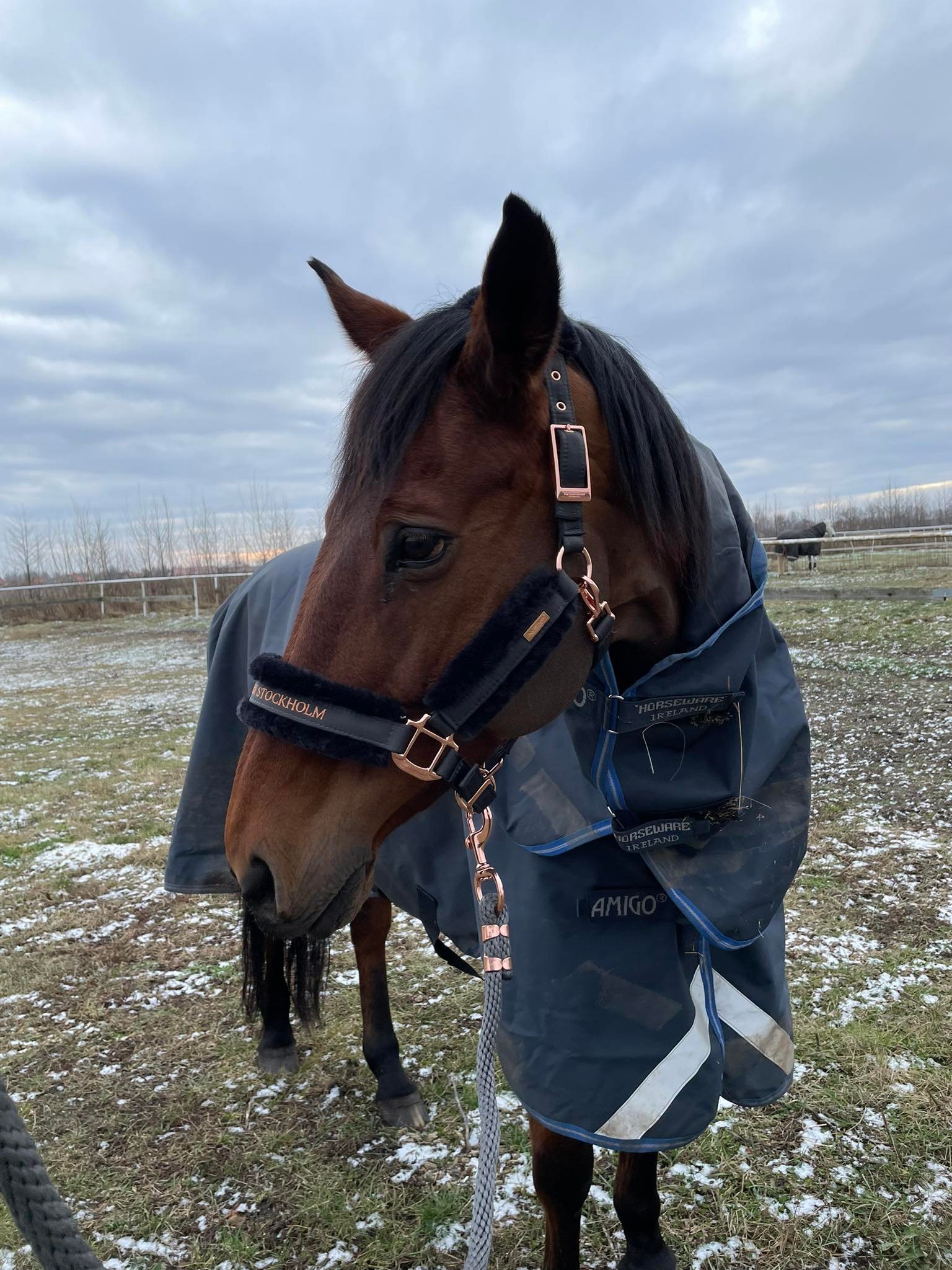 A tymczasem podrzucam jeszcze kantarek ES na modelce... która nie wygląda na zachwyconą bo została brutalnie wyrwana z południowego spanka 🤣