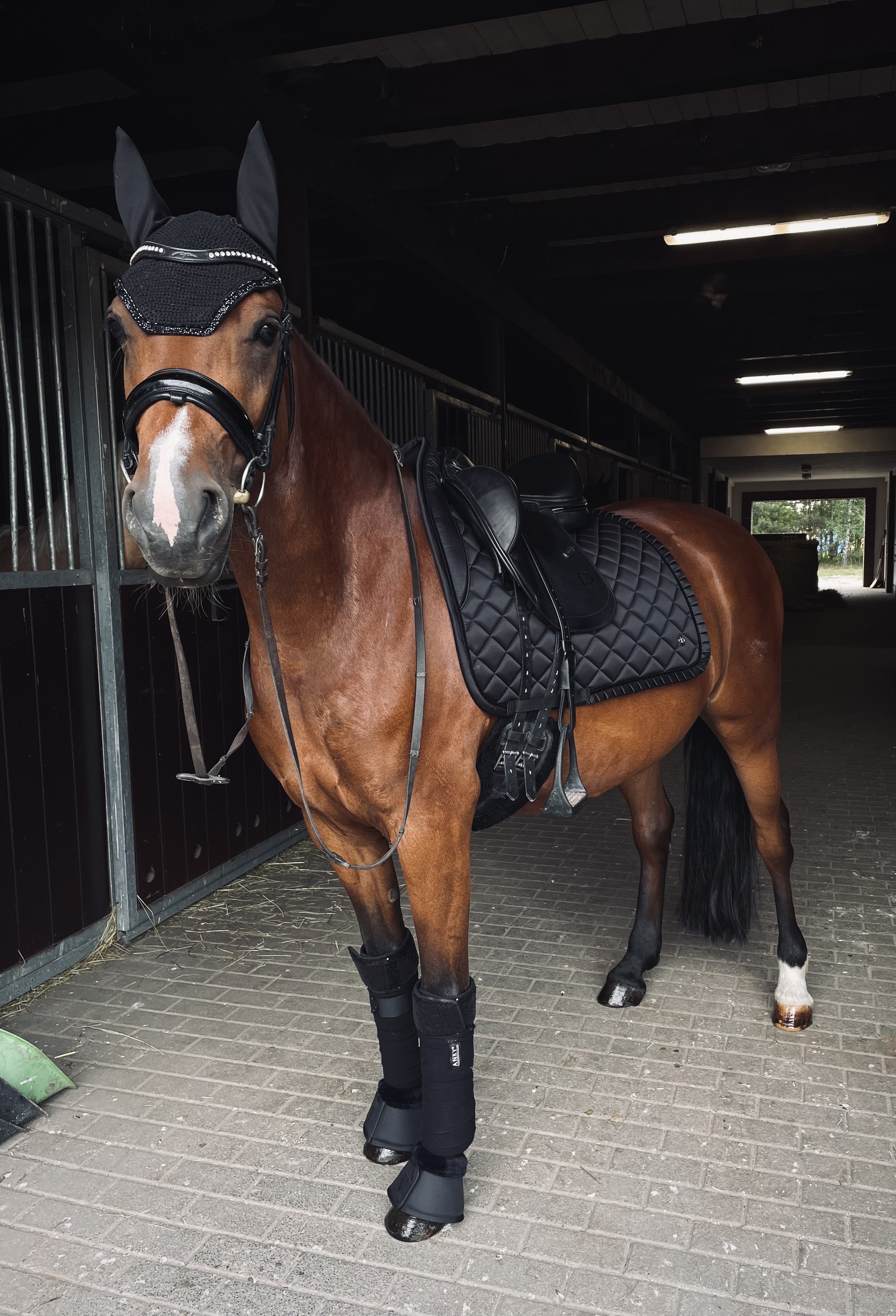 Nie mogę dołączyć już zdjęć. Mysmy dzisiaj dostały paczkę z Tackshopu i był tam długo wyczekiwany PsoS black bow. Niby czarny czaprak a jest obłędny. Czaiłam się na niego ze 3 miesiące.