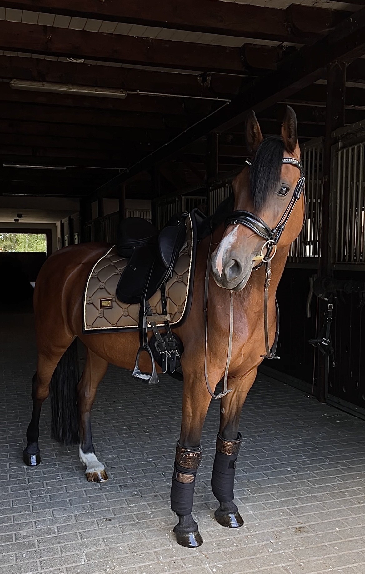 Ja akurat za takimi kolorami, typu Mango nie przepadam, ale w kwietniu na warsztatach widziałam dziewczynę w Eskadronie Satin Vintage gold na gniadym koniu i ... no przemówiło to do mnie 😝 jeździłabym 😜