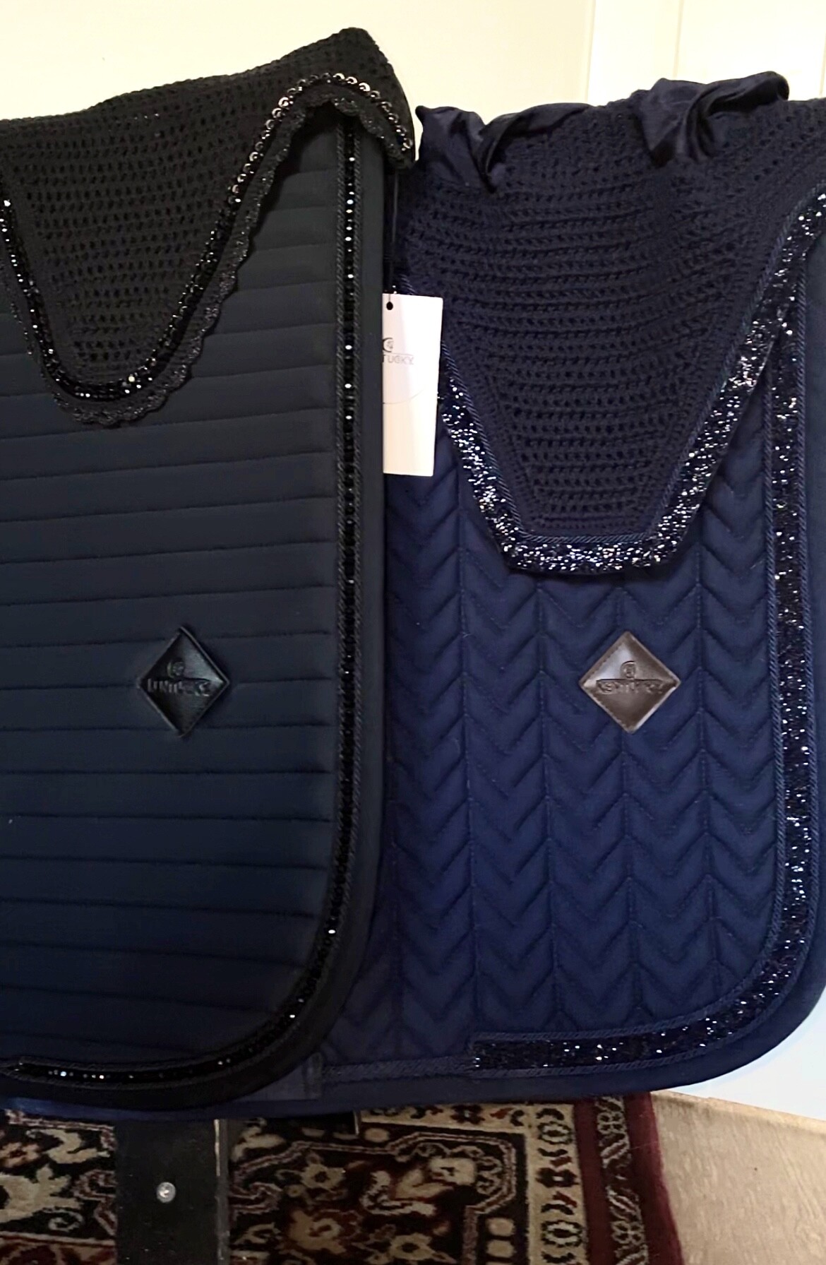 Boże napiszcie mi, że te brokaty są do dupuy, nie nadają się na codzienne ciuranie i coś tam jeszcze ... bo jak na cavaliadzie zobaczyłam tak niewinnie wyeksponowany eskadrona ten czarno- srebrny to zaraz mój mózg zaczął racjonalizować, że mi potrzebny "zimowy" czaprak🙂