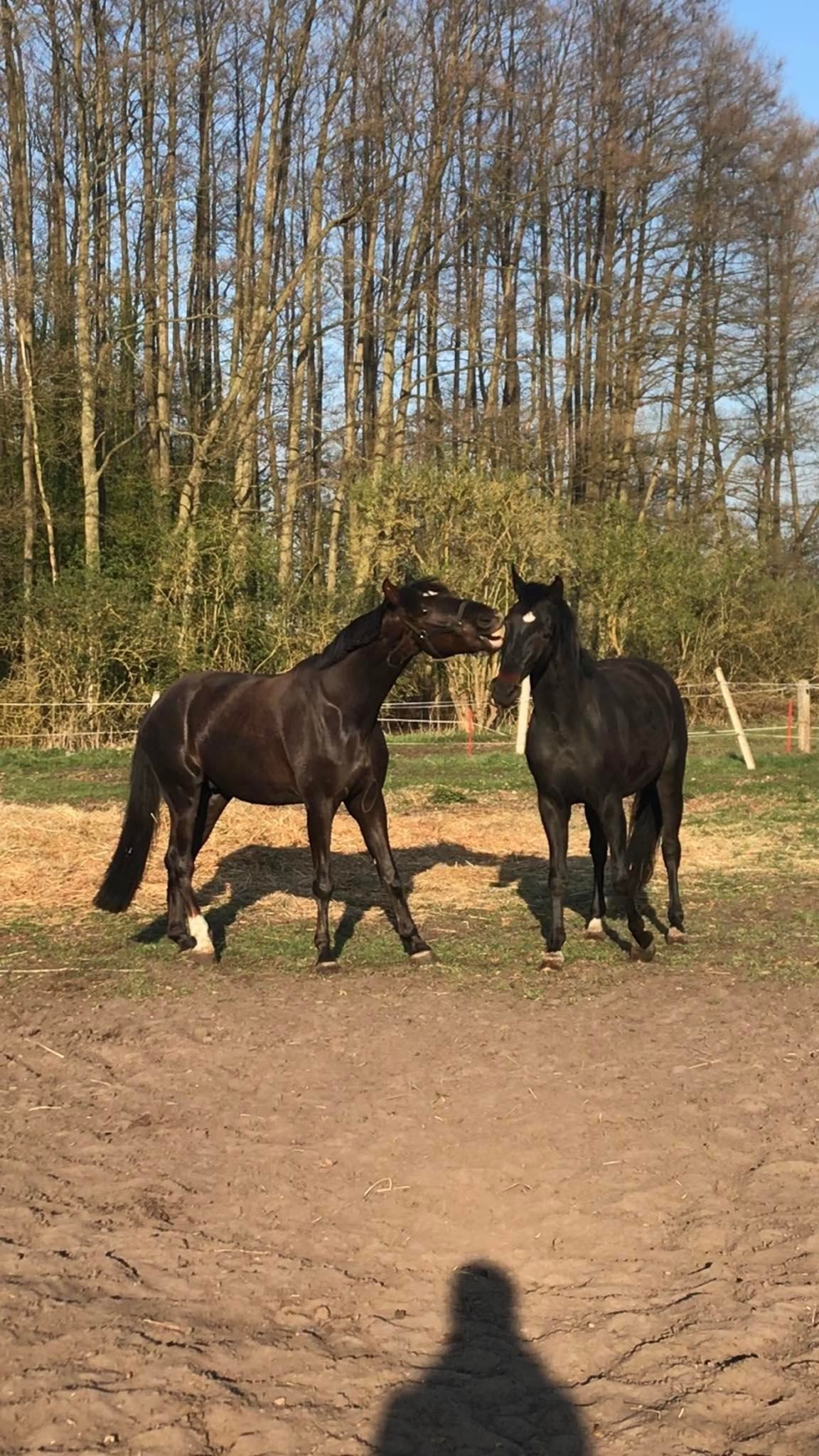 Muszę kogoś przyciągnąć do stajni, żeby mnie nagrał. Albo może lepiej nie, bo jak mi się wydaje, że jest super i patrzę na film, to mam załamkę, czemu to tak nie wygląda jak ja czułam.🤣 Może niech lepiej to uczucie zostanie w mojej głowie tylko.😂 Także nie mam nic z jazdy, więc wrzucam boksowo-meszowy portret i screena z zabaw padokowych z bratem.