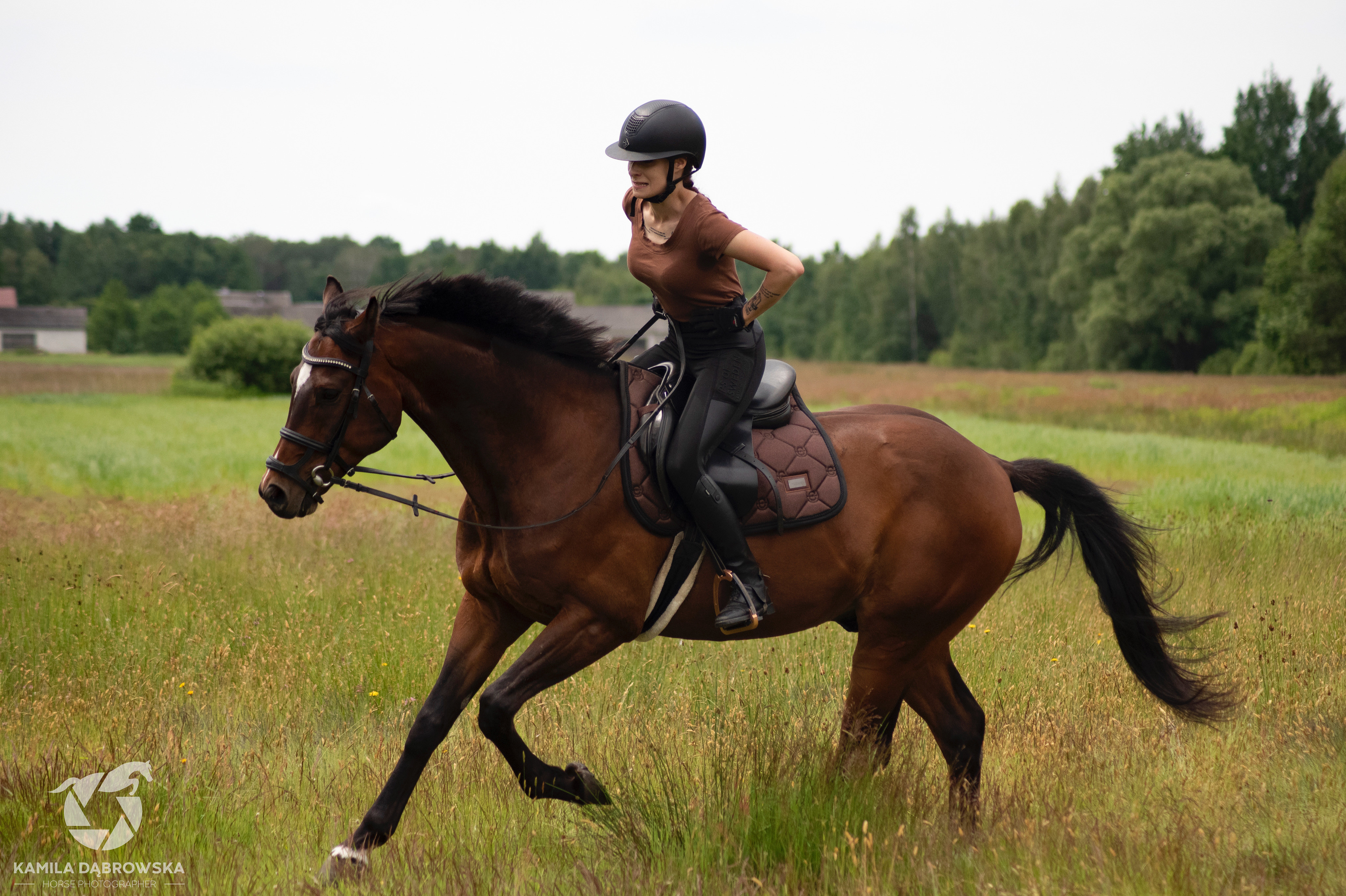 W czwartek poszalałam trochę na łące i wygalopowałam Dżonsa w jego stylu, nawet odważyłam się dać mu luźną wodzę i jechać bez trzymanki, co dla mojej głowy panikary było dużym skokiem. Wiecie, otwarta przestrzeń, brak kontroli, konik raczej z tych wesołych 😉 I było super! Jantar się wybiegał i porozciągał, rozluźnił i był przegrzeczny. Będziemy to powtarzać.