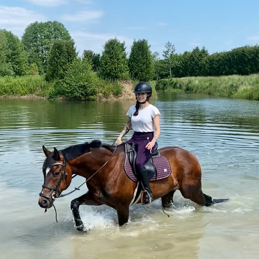 A co do spędzania czasu z koniem zamiast jazdy, to przybijam piąteczkę! 😁 Ja to mam największą radochę z pławienia w ręku albo na oklep, a że mamy staw w stajni, to jesteśmy w nim codziennie.
