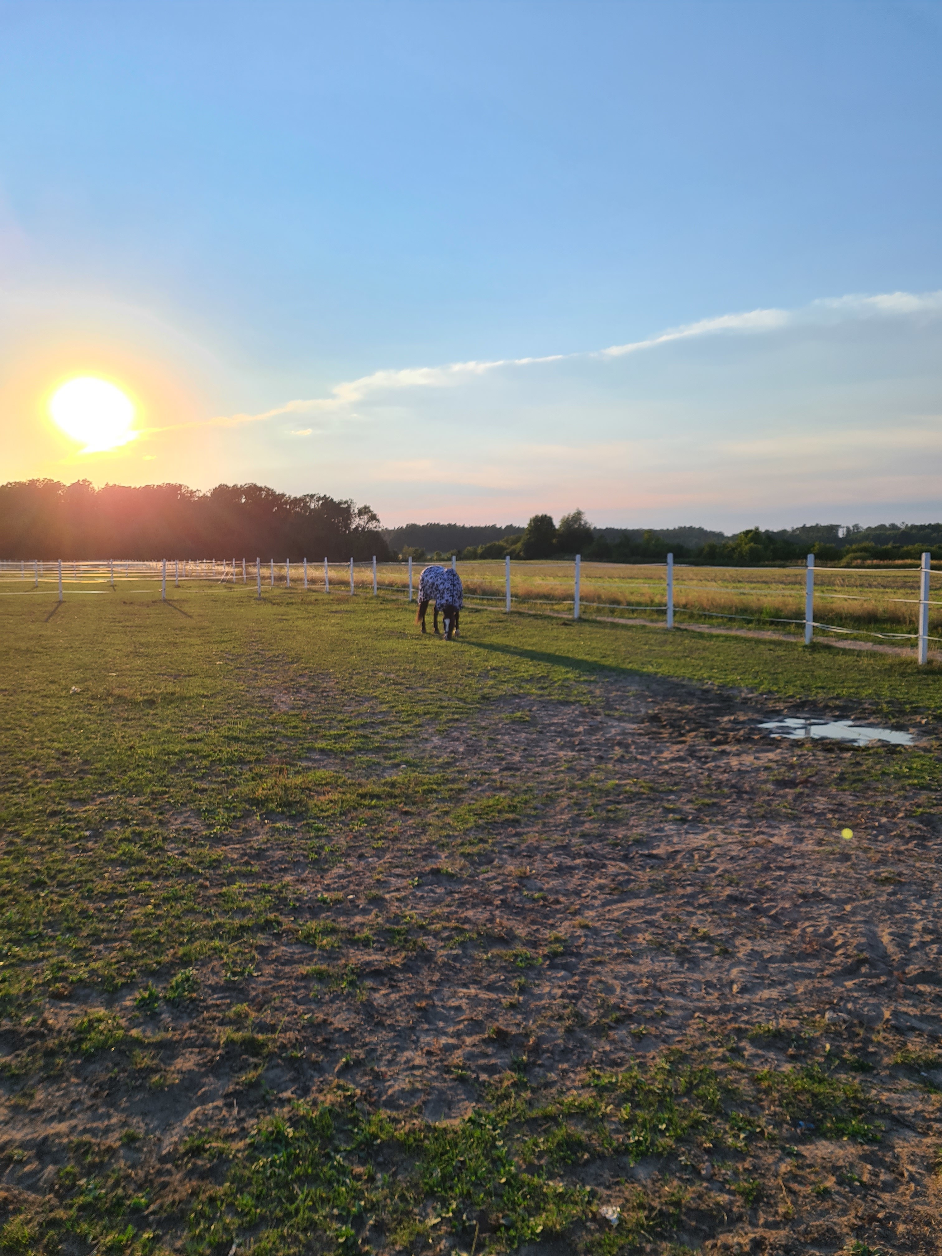 Zdrowotnie się pozbierałam, wypadł nam niestety przez to trening i z trenerką zobaczę się dopiero na koniec sierpnia, ale mówi się trudno i żyje się dalej. Konik miał wakajki, wdrożenie do ruchu poszło w miarę sprawnie, co prawda bylibyśmy już na 17 minutach kłusa, a jesteśmy ciągle na 8, ale to nic. Po tych wszystkich przebojach mam totalnie zero ciśnienia, cieszę się, że w ogóle mogę na nim jeździć. Bardzo to doceniam, uwielbiam swojego konia i czuję się na jego grzbiecie tak bardzo "na swoim miejscu" 🙂