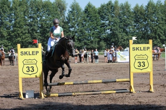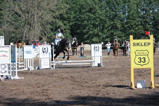 Ja dostałam jakieś fotki z naszych mikrozawodów (tutaj akurat 50 cm). Mój koń jakiś superszport nie jest, ale skakać lubi (tutaj nie widać za bardzo) - epizod przez ogrodzenie już tez był. Zawody mi się jechało fajnie, tak na spokojnie. Przejazdy na czysto, tylko czas taki se, bo się nie chciałam na żadne sciganki zabierać.