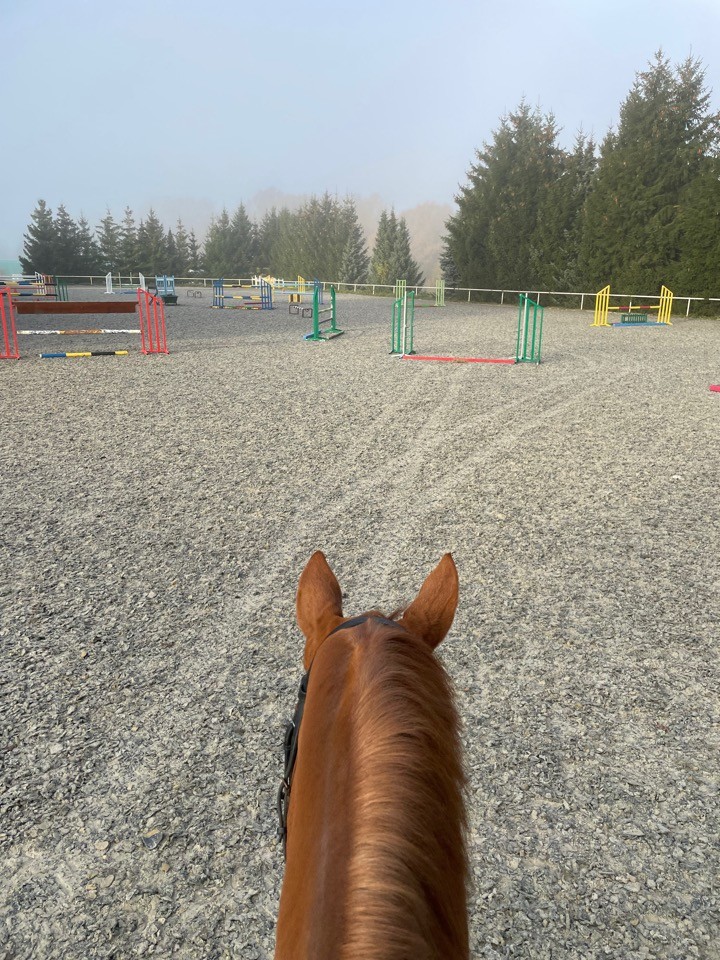 Ale najśmieszniejsze, że z moim chorym łbem i wyobrażaniu sobie x rzeczy, co koń zrobi, jakimś cudem zostałam w tej pracy naczelnym rozjeżdżaczem koni po kontuzjach. Ale w sumie to właśnie może się łączy z tym, że lepiej mi się jeździ w kółko i robi zakręty i przejścia niż wymyśla, co dzisiaj robić.😅 Tak czy inaczej dzisiaj kłusowałam na koniu, który nic nie robił jakieś dwa miesiące. To już hmm, piaty, a pracuję oficjalnie od sierpnia. Także jak ktoś potrzebuje ruszania konia po kontuzji, to mam doświadczenie zdobyte w krótkim czasie.😎