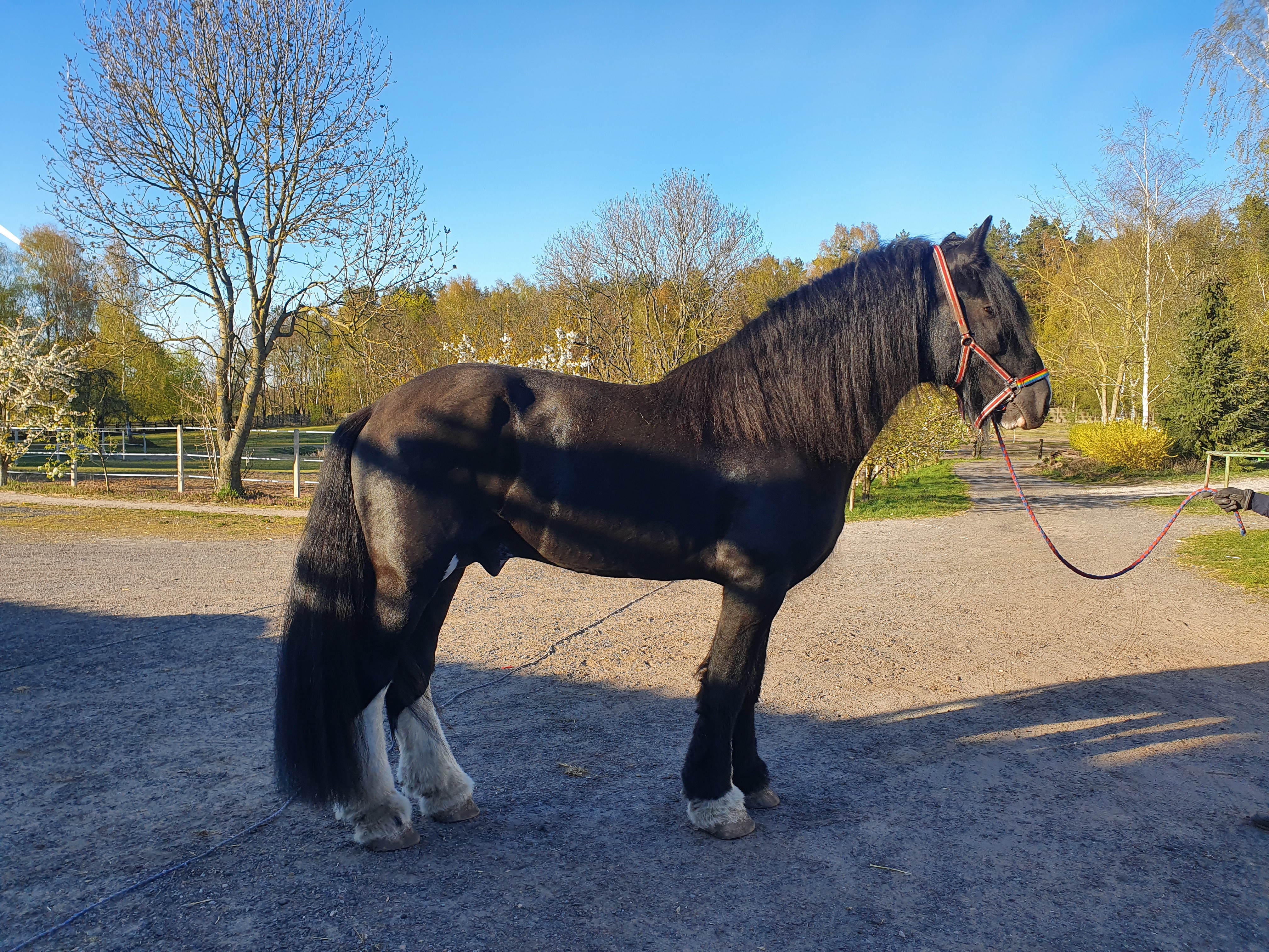 Na zdjęciach jest łoogier kolegi, którym się kilka miesięcy zajmowałam. Ładny, grzeczny bardzo, ale w pielęgnacji masakra. Kopyto wielkości mojej największej patelni, ogonem i grzywą mógłby obdzielić kilka koni... łeb większy, niż marzący Ci się kucyk... no i wzrost - on miał ze sto metrów w kłębie 😉 niska nie jestem (172 cm), a czyściłam ze schodków