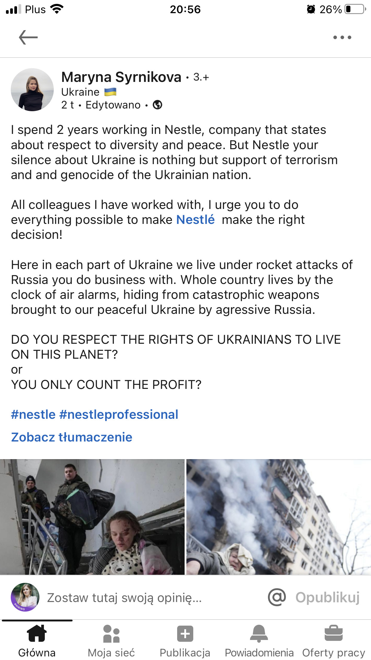 Ja nie kupie nic od firm, które prowadzą biznes w Rosji. I im mniej ich będzie, tym szybciej Rosji skończą się pieniądze na wojnę. Jasne, ze to nie jest miłe dla Rosjan, ale bardziej niemile dla Ukraińców.