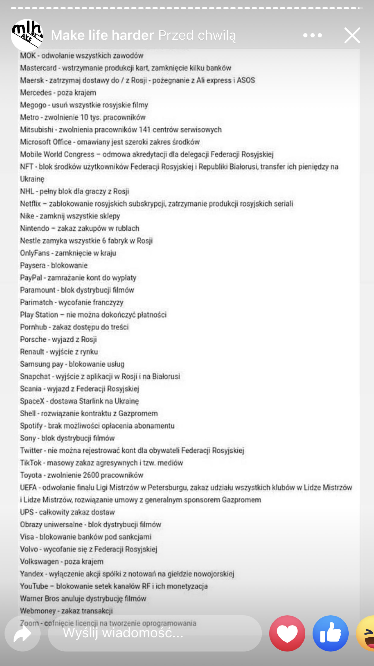 Ja za to wiem co się dzieje z polskim importem. Odrzucane są polskie zamówienia. za chwilę nie będzie w sklepach towarów... - gdyż ponieważ wg. inwestorów my jesteśmy już niejako stroną tej wojny.