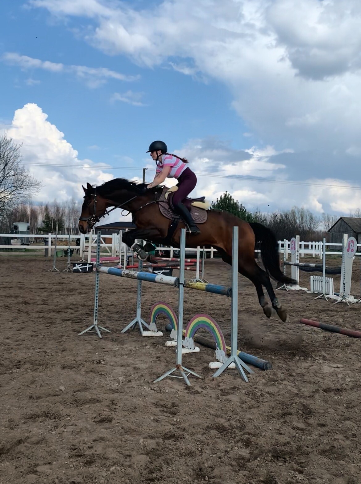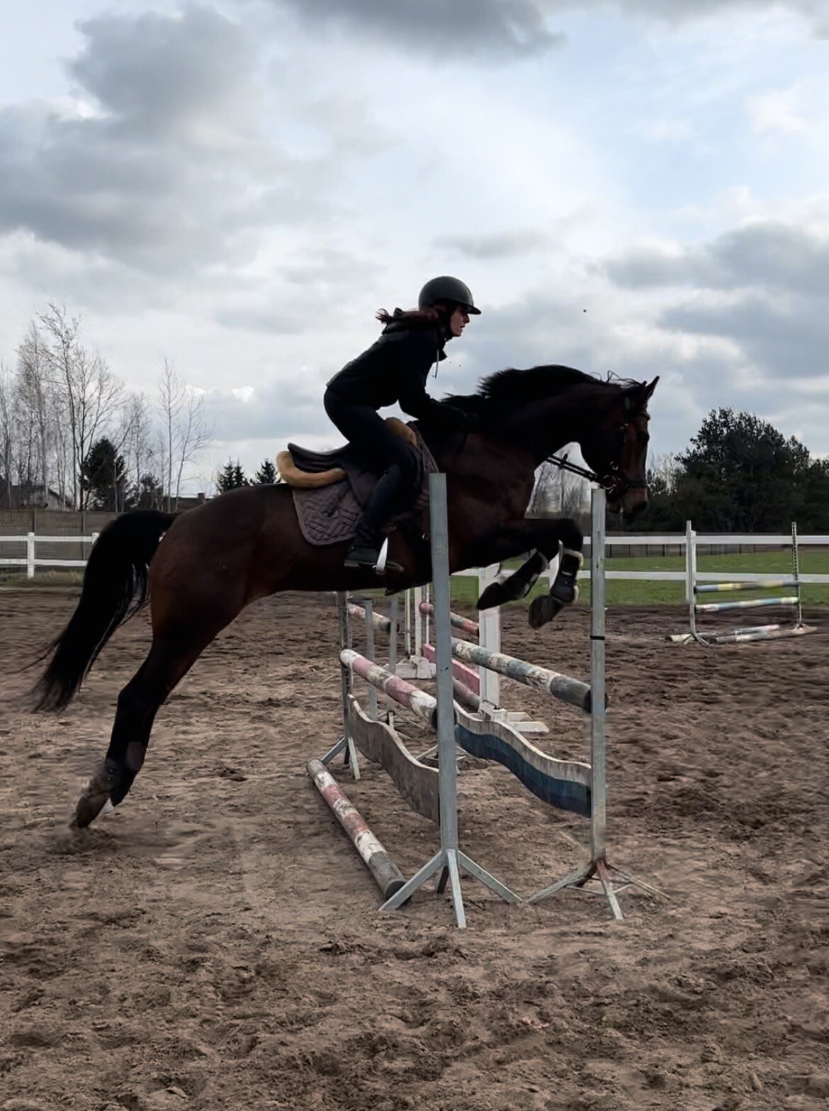 Dostałam chwilowo konika 5 lat na skoki na rozruch po kontuzji i jaram się.😍 Na razie jeszcze skaczemy stacjonate i okser po ósemce, ale ze skoków na skoki mamy coraz lepszy galop i najazdy. Tylko ja go póki co jeżdżę, więc też potem wiem nad czym z nim najbardziej pracować na płaskim.