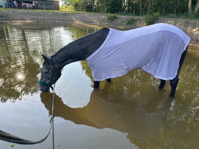 I przy okazji mogę się trochę pozachwycać, ze jaśnie królewna dla której jeszcze rok temu zamoczenie kopyt w jakiejkolwiek kałuży było ujmą na honorze, w końcu zaczęła akceptować wodę, na tyle, że ostatnio jak poszłyśmy do stawu na oklep to się ze mną w tym stawie położyła 😂