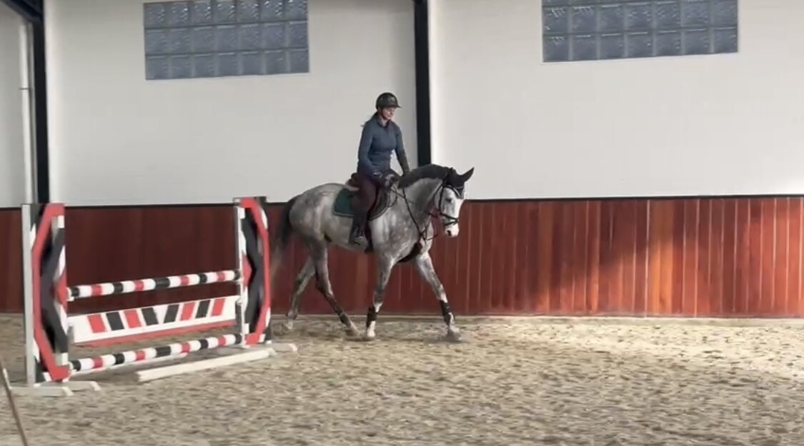 Update po miesiącu z Siwym. Większość tego czasu chodził na lonży, miałam wrażenie, że jest nieregularny, był wet, ale powiedział, że to raczej od mięśni u góry i musi angażować bardziej zad. Także wszedł lonżing 3 tygodnie, mógł być wcześniej jeżdżony, ale święta itp., byłam w pracy czasami sama, a były ważniejsze konie do jazdy.😅 Także pod siodło wrócił dopiero w tą środę, a dzisiaj mieliśmy swój pierwszy wspólny trening. Nie nazwę go skokowym, bo to była mała cavaletka w zasadzie, ale zawsze jakiś początek dla nas.😁 Musimy się jeszcze lepiej zgrać, nie jest to miły kochany konik, robiący dla człowieka wszystko bezwarunkowo, także trochę zajmie budowanie zaufania z obu stron. Po pierwszym drążku w galopie odstawił mi takie rodeo, że mi gratulowali, że tak długo wysiedzialam zanim trafiłam na ziemie.😂 Ale też do tej pory on mało drążków chodził, umie tylko skakać, a nie wie co ze sobą zrobić na drążkach, więc mam teraz plan, żeby zawsze chociaż jednego drążka przejeżdżać, żeby to nie było dla niego takie wydarzenie.