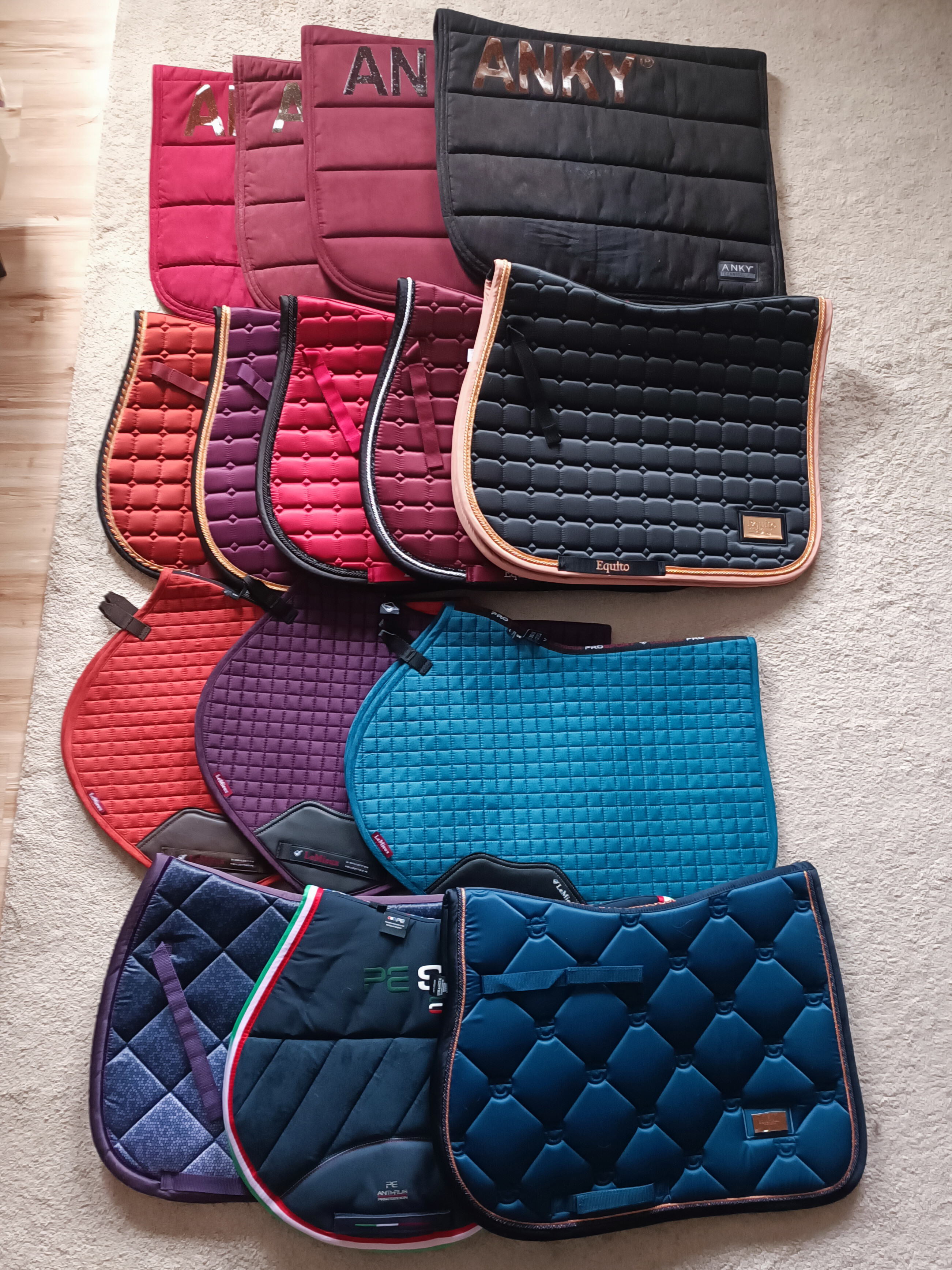 Mój Małż jedank o wszystkich wie, no bo swojego konia tez siodła 😅 a siodlarnię mamy w domu i sam do niej wieszak na czapraki zrobił. Jestem zdania, że on ma tu rację, jakieś podmianki, albo jak jakis się gdzieś przetrze już, to kupujemy coś nowego, ale przesada w ilości to już zbieractwo i to dosyć kosztowne w tym przypadku więc dobrze, że mnie stopuje w tej kwestii.