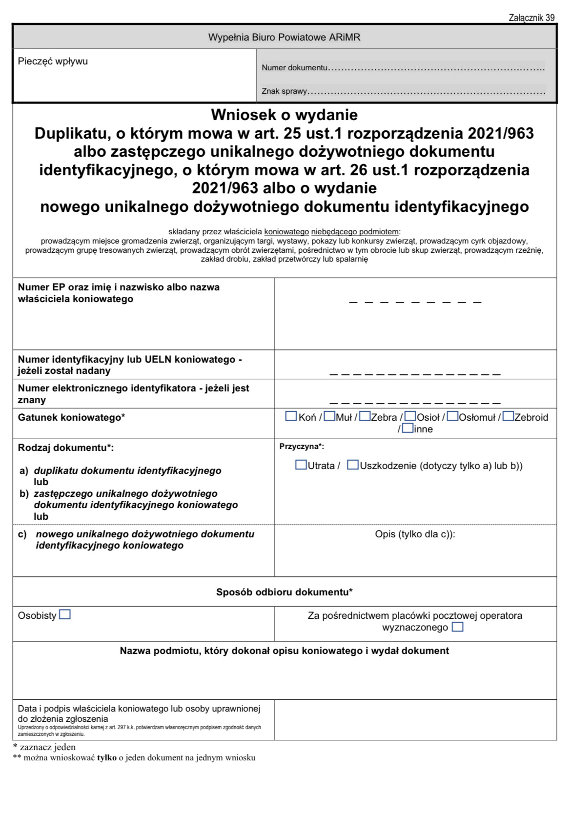 Ja ( właściciel) chcę wyrobić duplikat zaginionego paszportu dla konia, który stoi w pensjonacie ( u posiadacza). Koń ujawniony. Okazuje się że muszę złożyć taki wniosek nie tylko w PZHK ale też w ARiMR. W PZHK wiadomo, nic nowego, ale w AIRM chcąc złożyć wniosek przez IRZ plus wniosek o duplikat może złożyć jedynie posiadacz konia, nie właściciel. Niezłe okienko do nadużyć. Nieuczciwy posiadacz może "zgubć" paszport konia, na kolanie wypisać sobie umowę zakupu konia od dziadka, którego już nie ma i wyrobić paszport na siebie.... tak mi się wydaje przynajmniej 😕