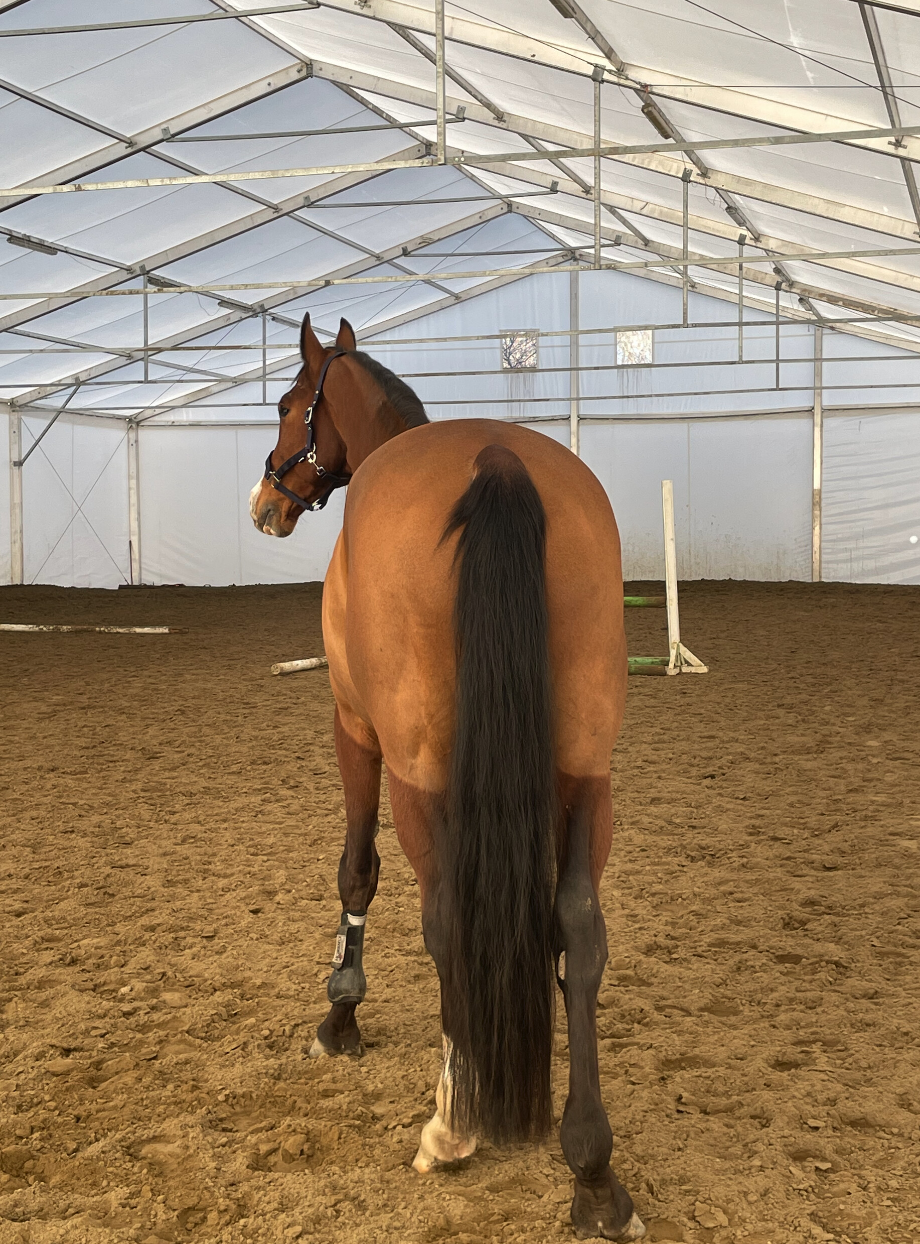 A my mamy z konieczności 2 tygodnie spacerkowania w ręku po górach. Okazało się, ze trzeba było wyrównać oba biodra, była pani chiropraktyk i jest już OK i duża różnica.Ale trudno chodzić na spacerki z koniem, który boi się wiatru, reklamówki i własnego cienia😉