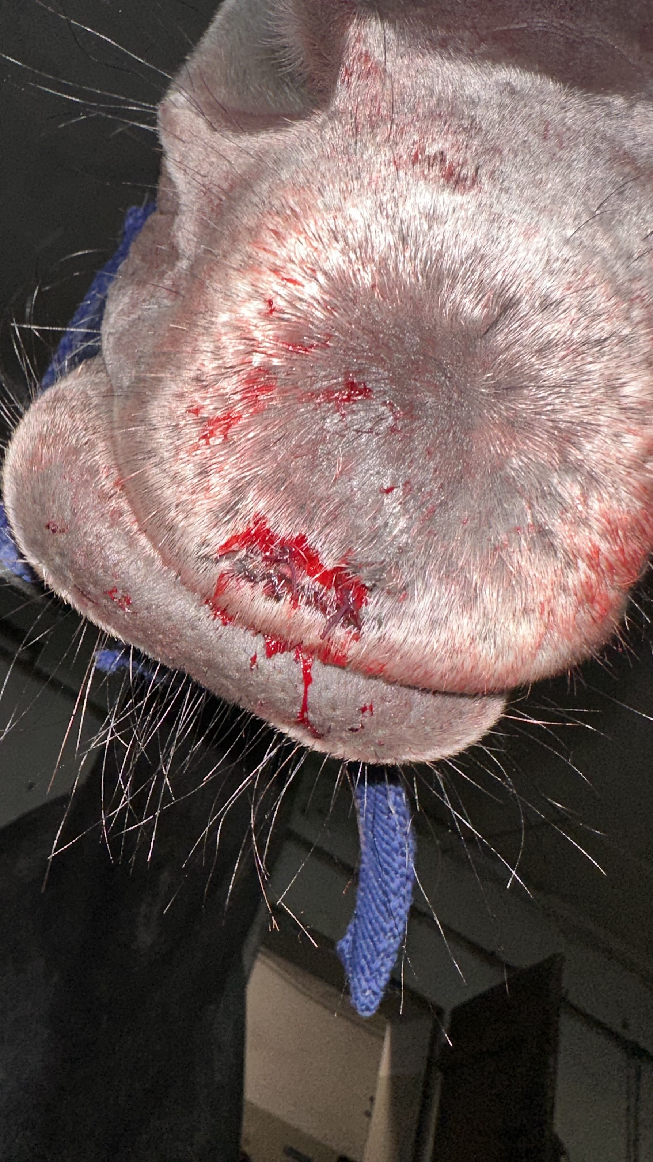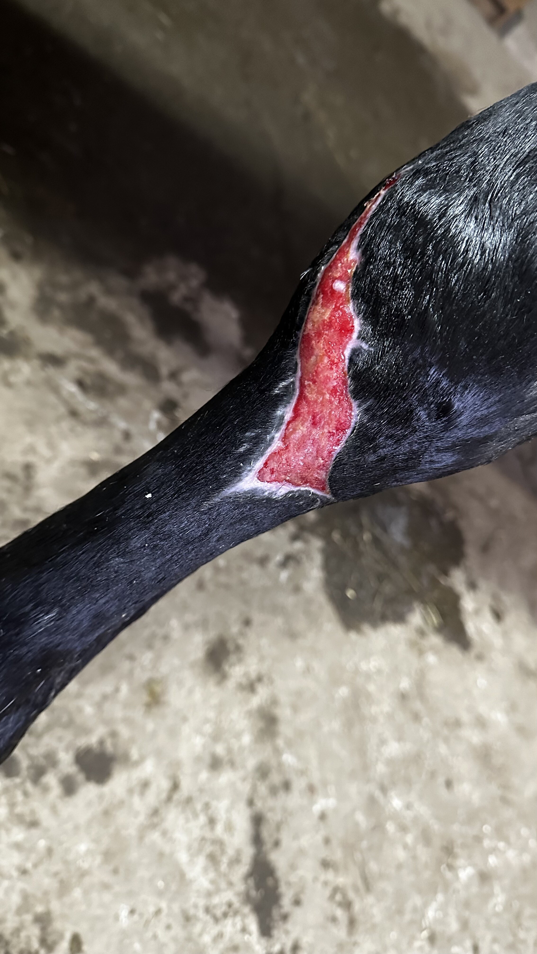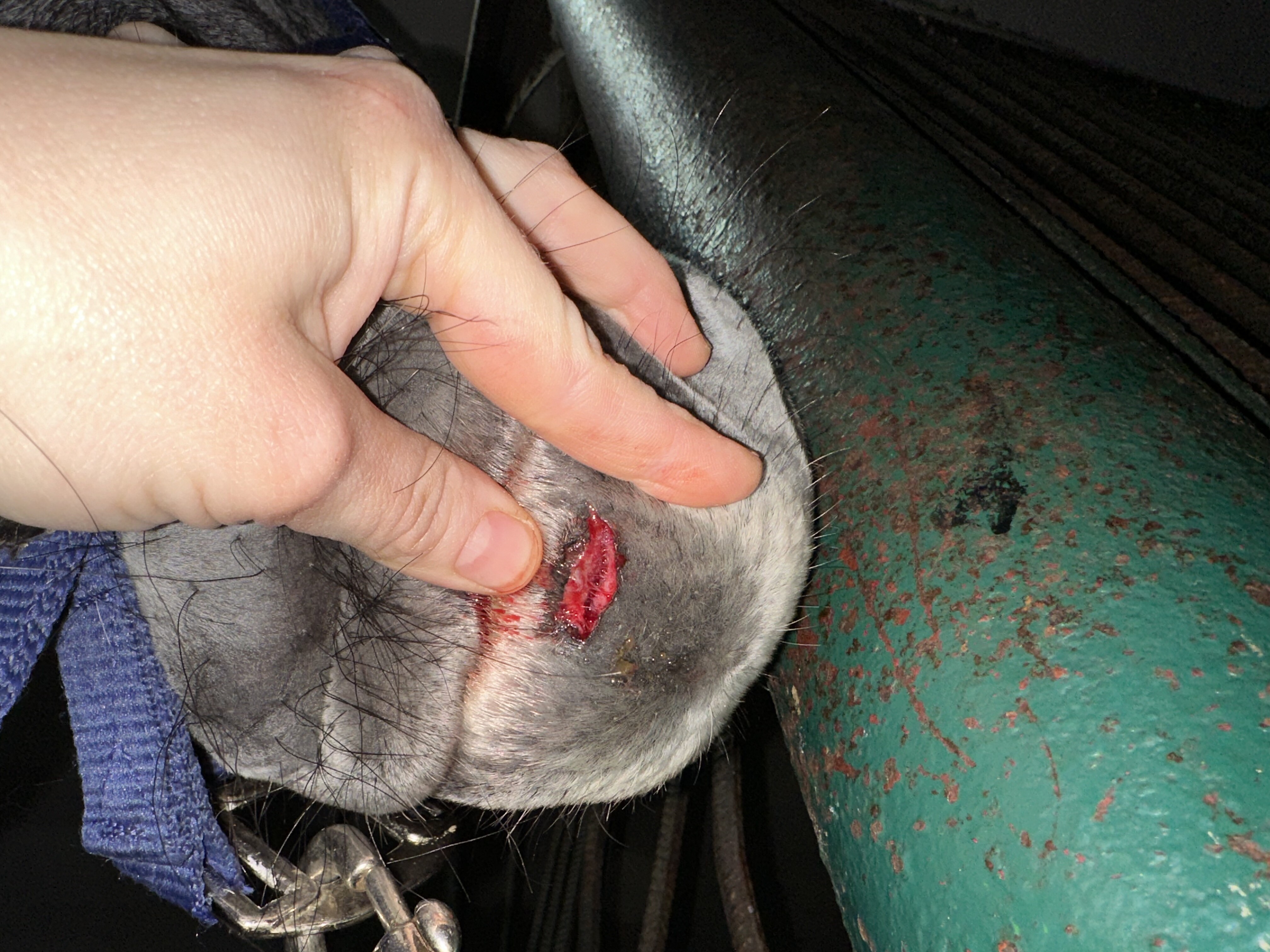 Nie widziałam, więc na 100% nie jestem pewna, ale tam były ślady krwi. To był jej pierwszy dzień na padoku po dwutygodniowej przerwie (wcześniej stała bo się podbiła), no i masz.