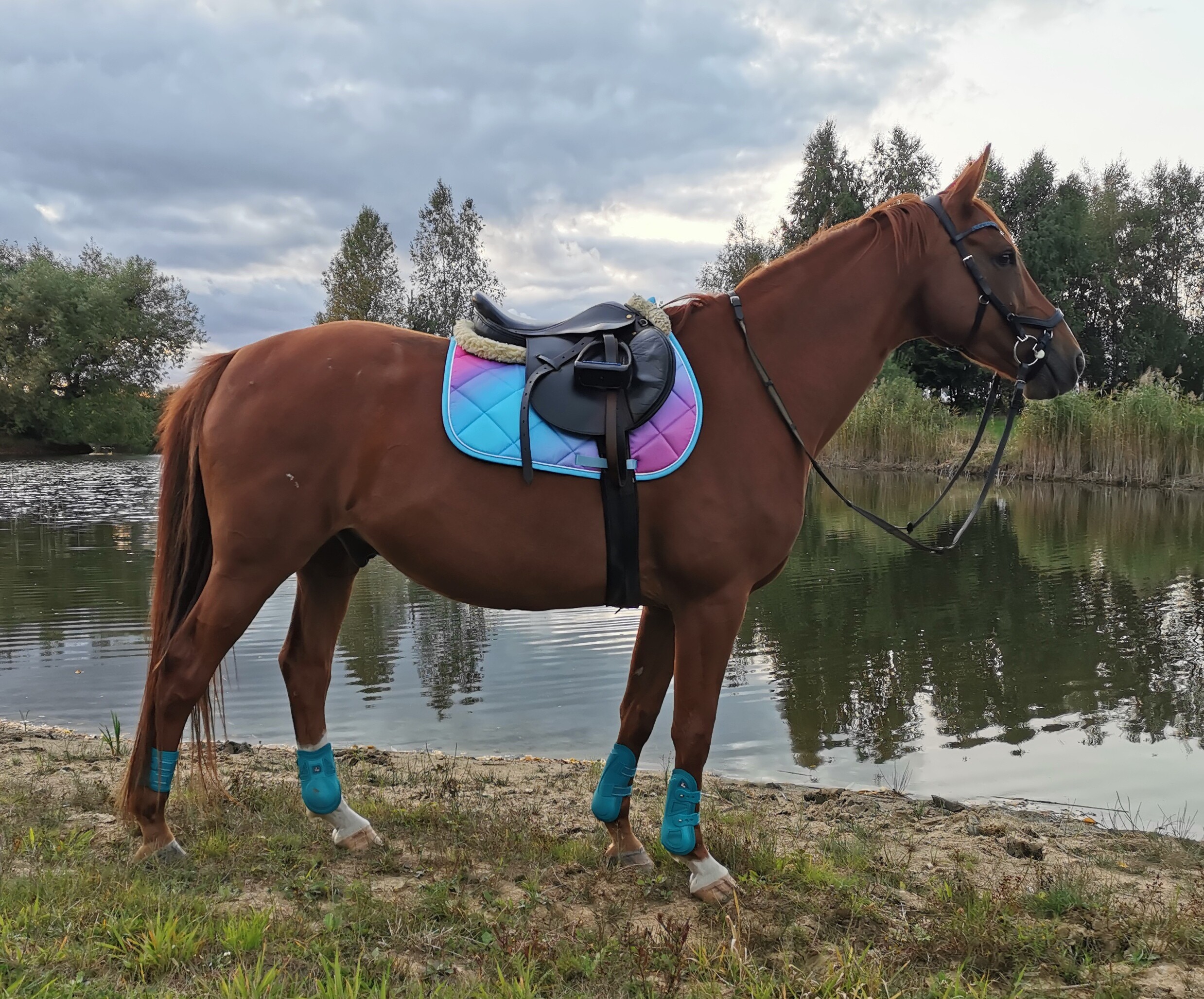 Mam ten czaprak i nie polecam przy częstym użytkowaniu. Ciężko go doprać, potrafią się robić zaciągnięcia. Na zdjęciu po praniu najpierw karcherem a później w pralce. A ma 4 lata kupowałam go za ok 100 to aż tak nie żal. Bardziej bym polecała tego weatherbeeta. Jakość super.
