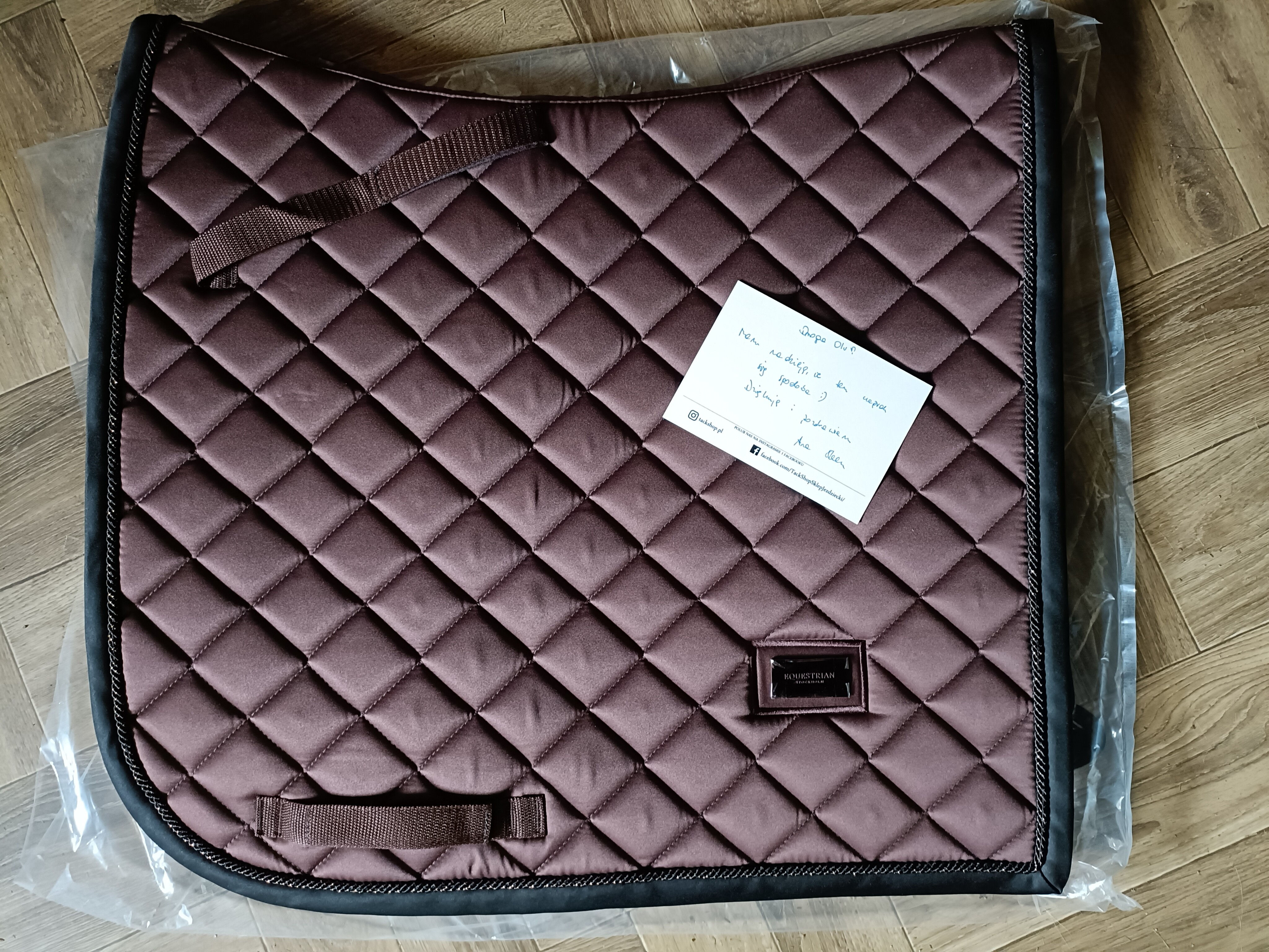 Dzisiejszy zakup nowego siodła, skończył się również nowym czaprakiem. Dość odważny kolor jak dla nas. Pojutrze stroimy siwka 🎃