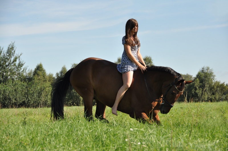 Stawanie dęba jest może i widowiskowe ale w "naszym" przypadku zbyt ryzykowne. Strzelam z siodła z rewolwerów (Cowboy Mounted Shooting) i wyrwanie do góry w trakcie treningu było by niebezpieczne dla mnie, konia jak i osób postronnych. Skórka za wyprawkę nie warta.
