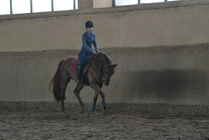 Z moich obserwacji wynika, że uspokoił mi się dosiad, nie macham już rękami, nie odstawiam ich; ale wciąż mam problem z podniesieniem swojej własnej głowy znad szyi konia. Co do konia, nie wypowiadam się - czekam na Wasze zdanie 😉