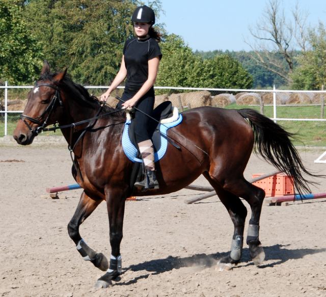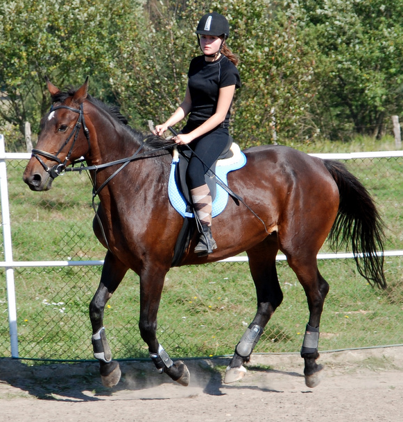 Koń zaczyna unosić głowę do góry więc ja zaczynam używać mocniej łydki, koń zaczyna pędzić, unosi coraz bardziej głowę, a ja czuję się jak na cykającej bombie bo nie potrafię złapać z nią kontaktu więc tak na prawdę może zrobić co chce (ona, nie ja rzecz jasna)?