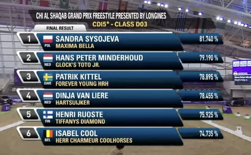Osoba z ziemi na słuchawce to żaden wyznacznik, chyba każdy ma na rozprężalni, czy jest mistrzem świata czy zdaje odznakę... A tym bardziej jak się ładuje kasę i wysiłek w wyjazdy, przecież to dopiero od paru lat dopiero para się pokazuje na czworobokach w Europie, szkoda jechać i nie wykorzystać szansy na maksa żeby się pokazać